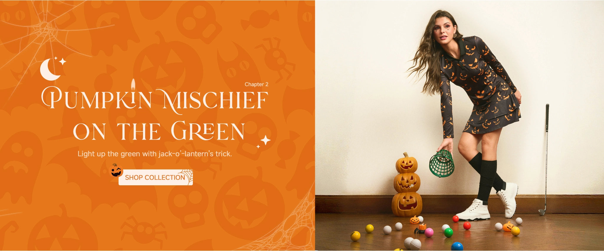 This Halloween, the fairway comes alive with magic. Bats dance across the twilight sky, ghosts whisper secrets of the season, and pumpkins grin with playful mischief. In the middle of it all, fashion becomes the spell that ties every moment together.