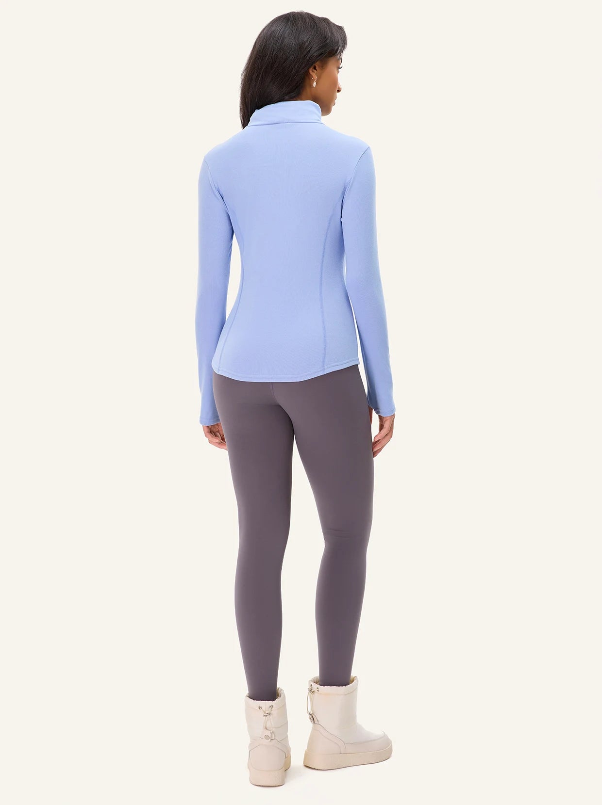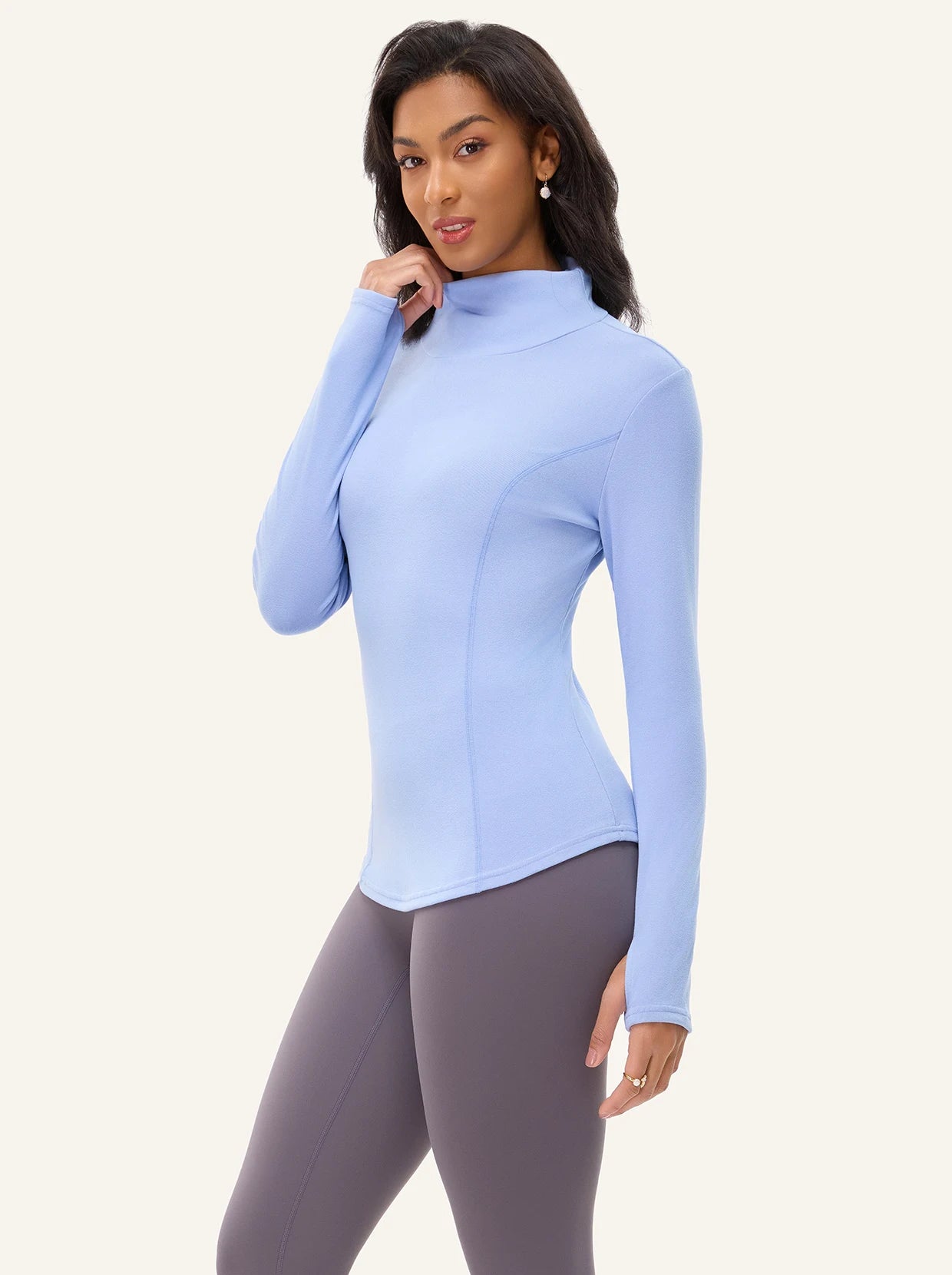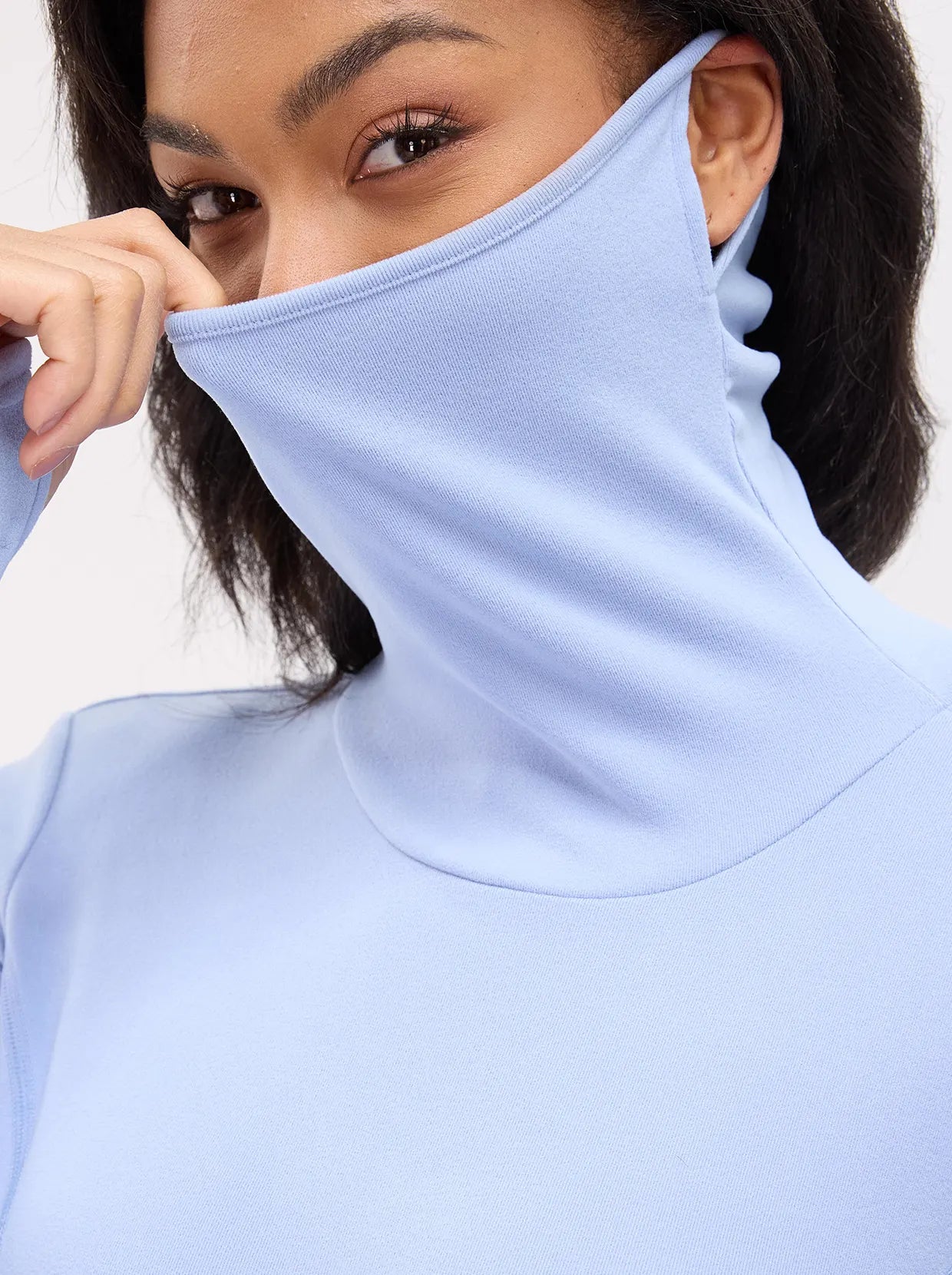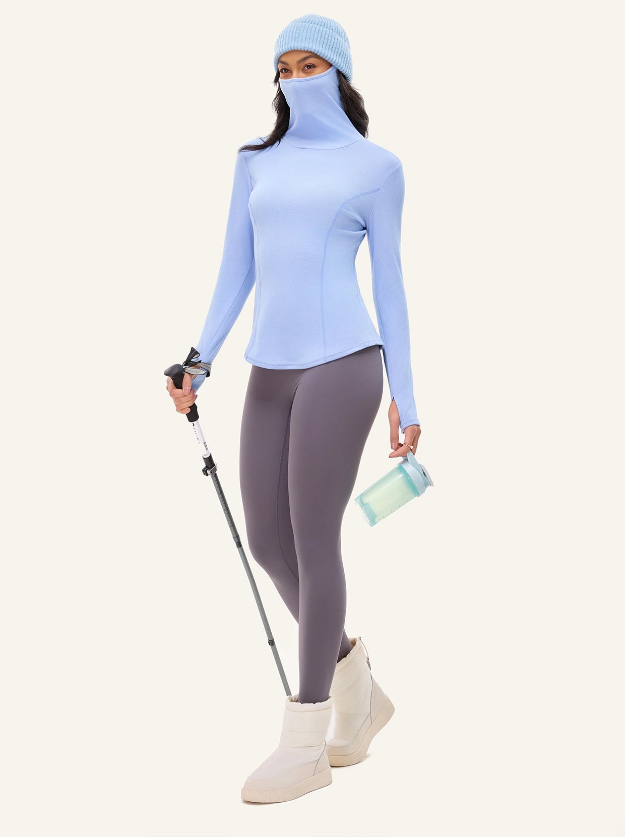 Cowl-Neck Long-sleeve Thermal Top with Windproof Mask