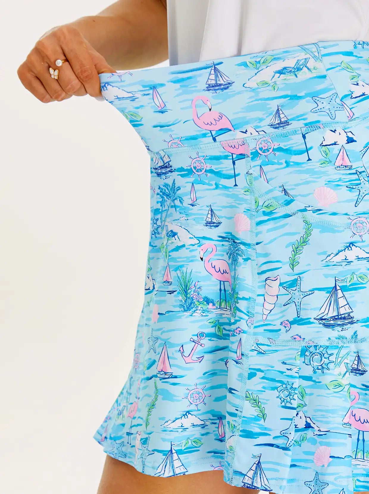 Highlights: UPF50+ (UVA/UVB), built-in shorts, pockets, and back pleated hem