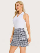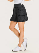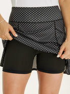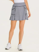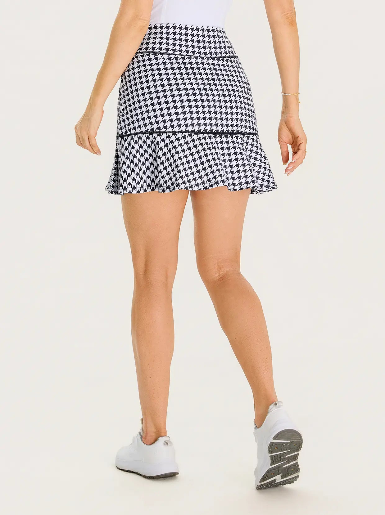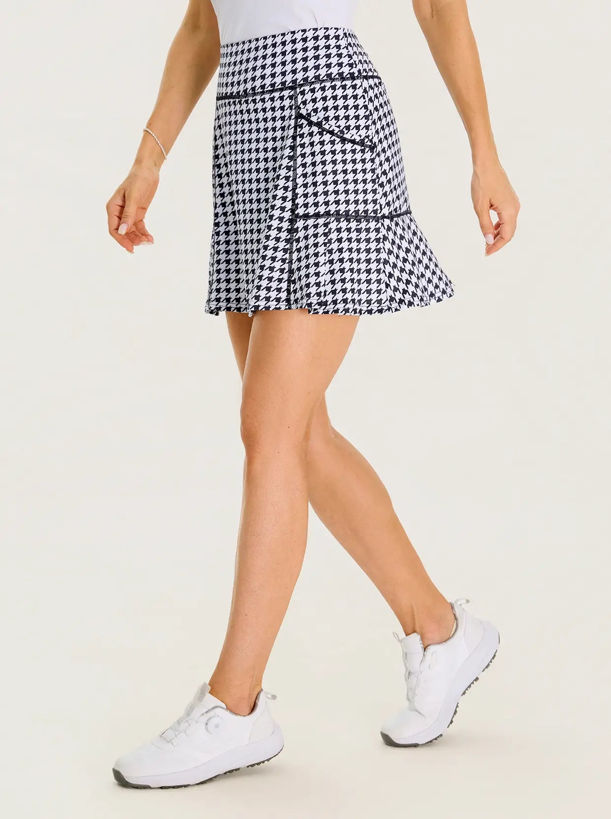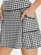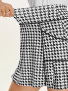 Add some style and convenience to your active wardrobe with our Pleated Skort. Not only does it feature a trendy houndstooth print and built-in shorts, but it also has pockets for storing small essentials. Plus, with its quick dry and moisture-wicking properties, you'll stay dry and comfortable during any activity. And thanks to its soft and stretchy fabric, you'll have a full range of motion.