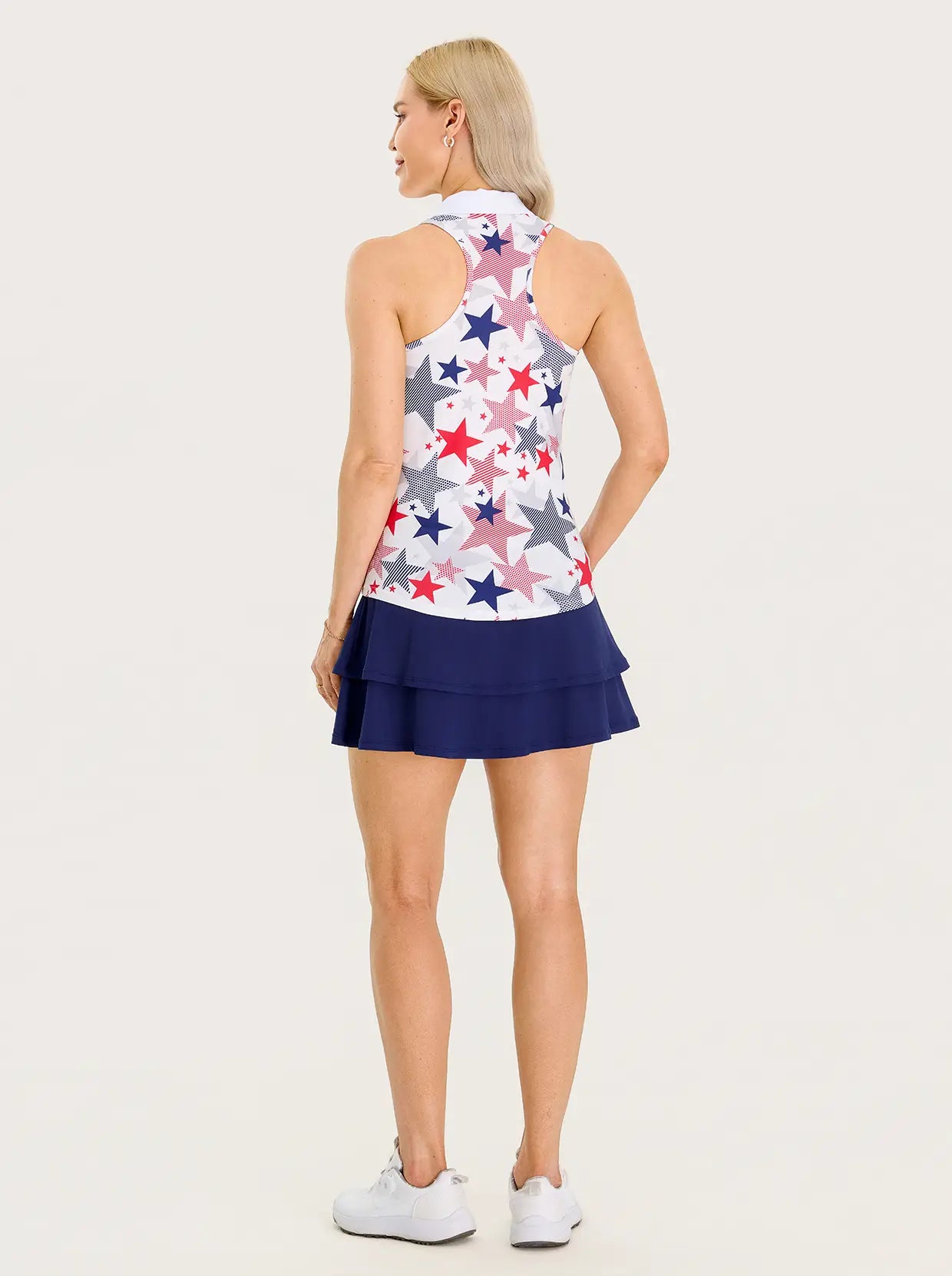 36" V-neck Racerback Sleeveless Polo Dress with Shorts