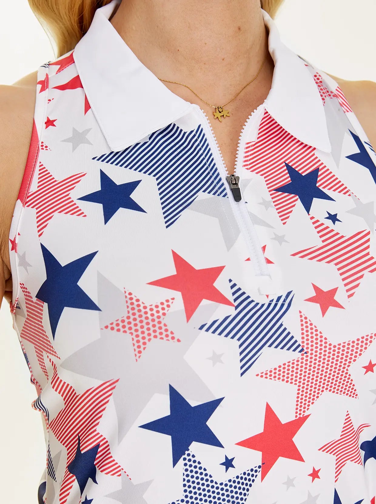 White Floral Racerback V-neck Sleeveless Polo Shirt
