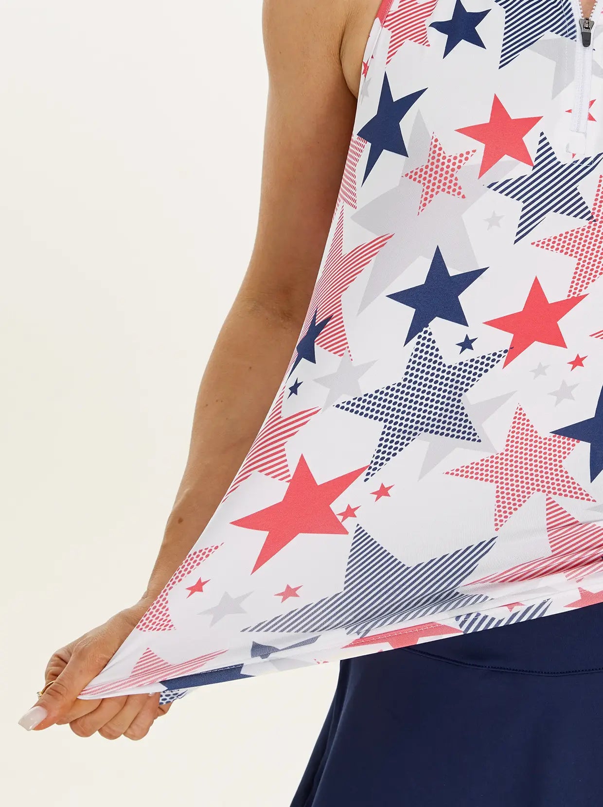 Heart Print Racerback Quarter-zip Sleeveless Shirt