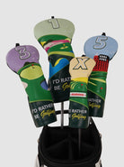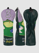 Protect your clubs in style with these charming golf course headcovers. Built with tough premium leather and lined with plush cushioning, they deliver serious protection without taking themselves too seriously. The vibrant green embroidered golf course design brings personality to your bag. Durable enough for countless rounds, playful enough to make your golf buddies smile.