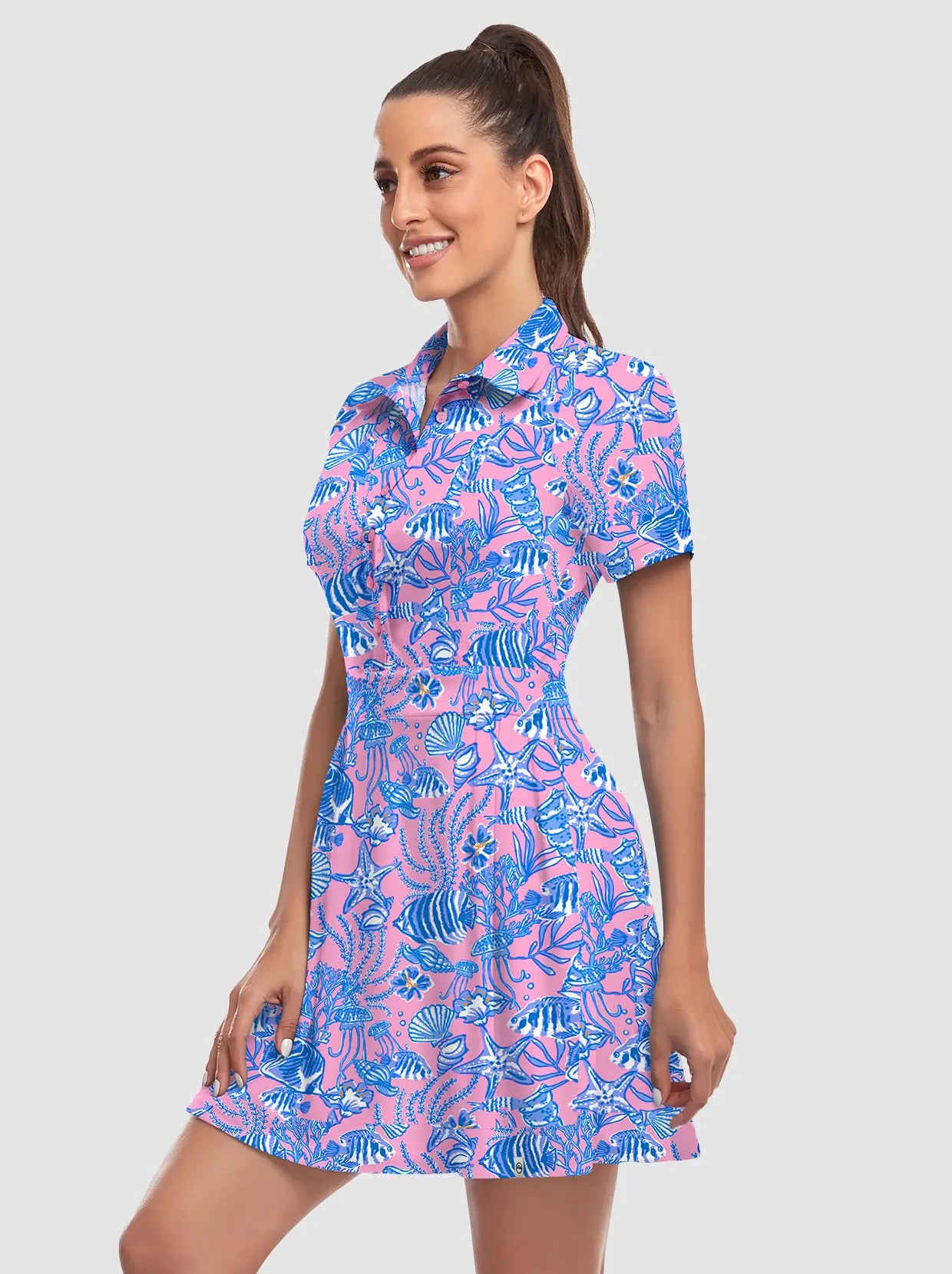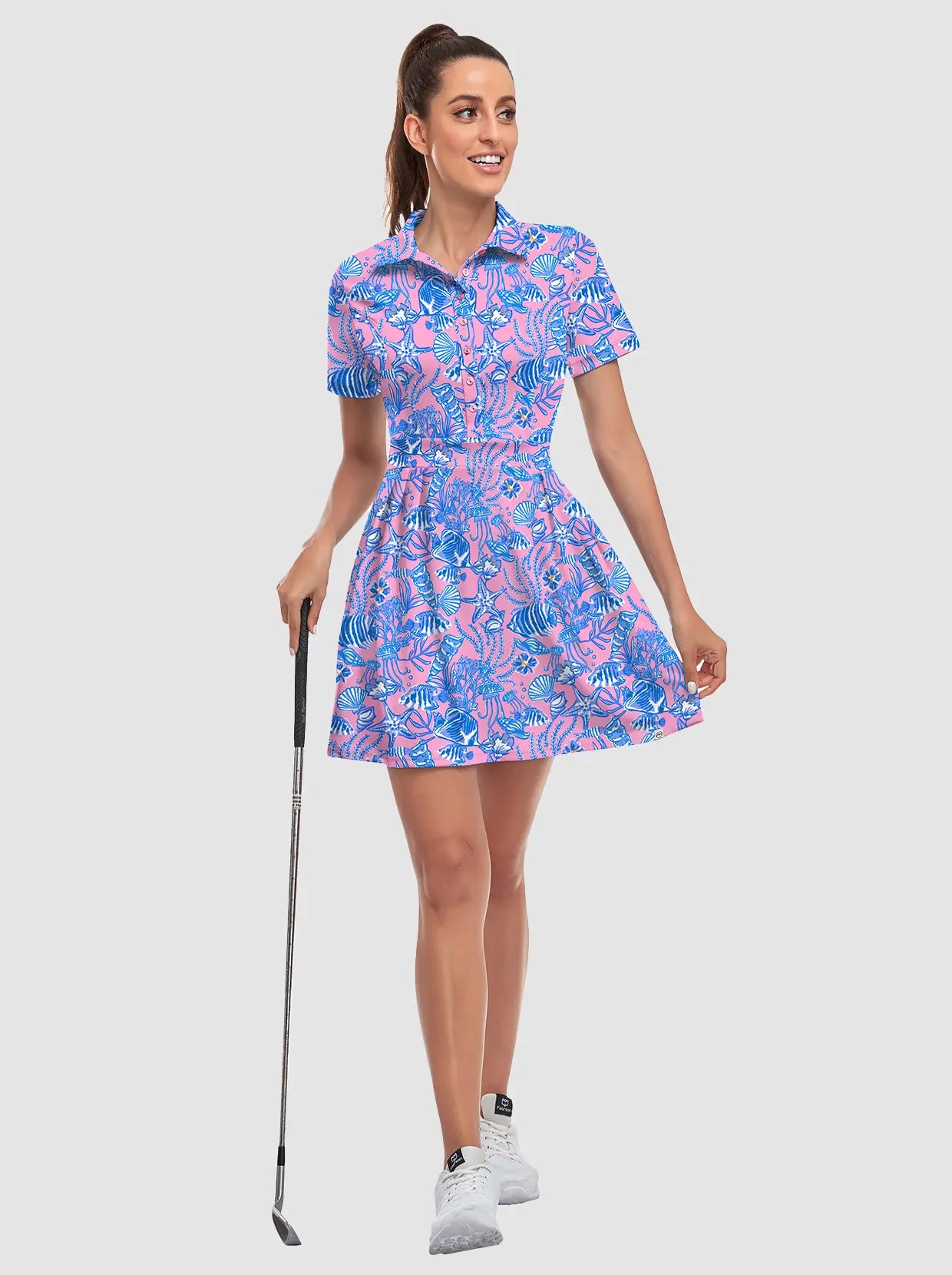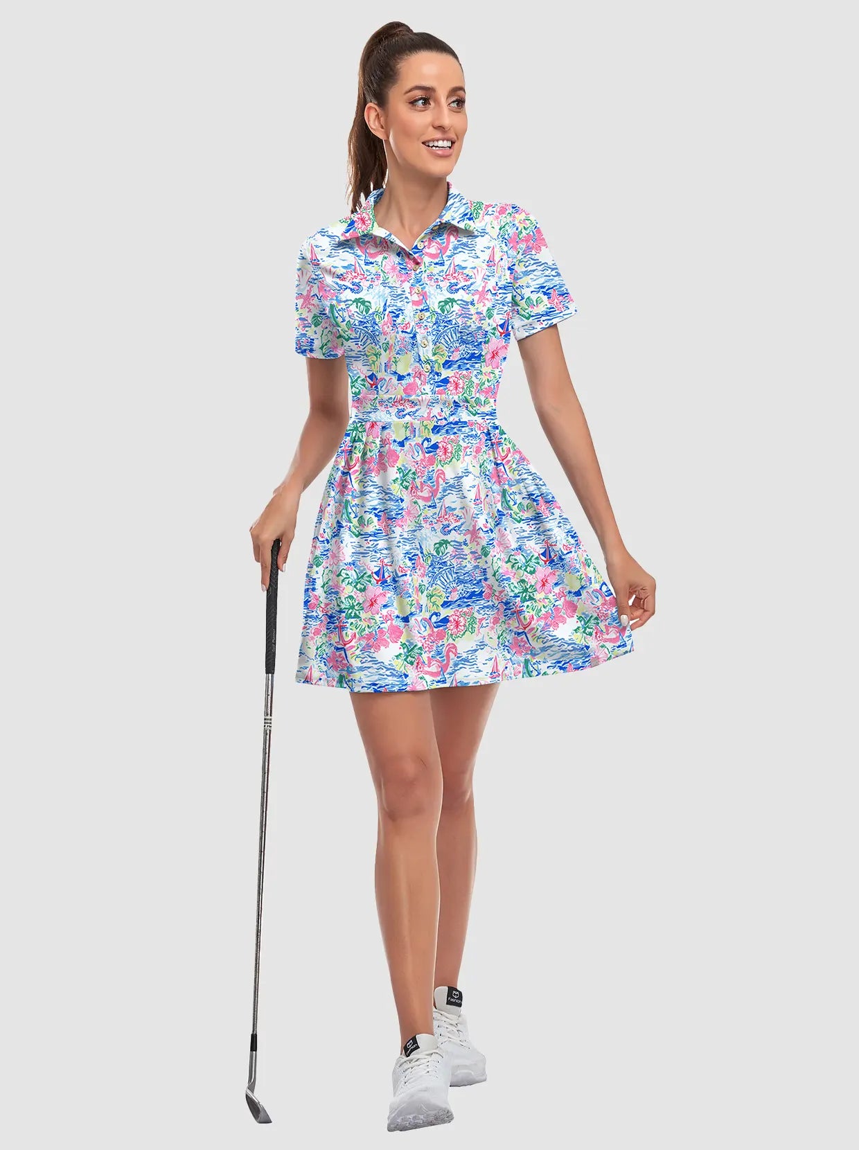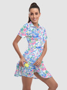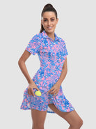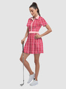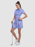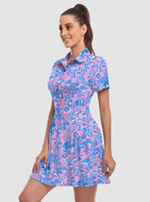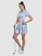 Your dream to glide across the course like a graceful flamingo is about to come true! Our short-sleeved tennis/golf dress is designed to enhance your feminine curves while ensuring maximum comfort and style. With 4-way stretch and anti-wrinkle fabric, you'll be serving looks and aces effortlessly. It's the perfect time to unleash your inner athlete!