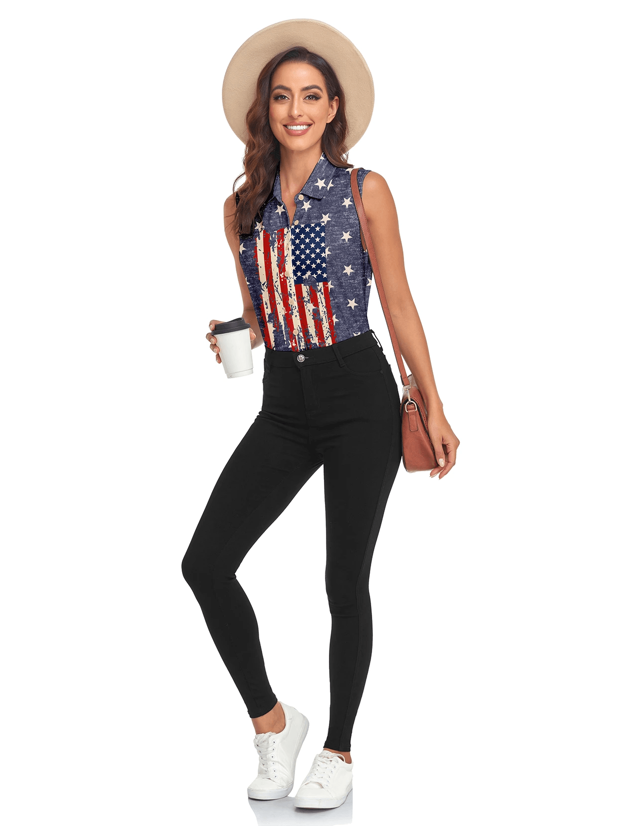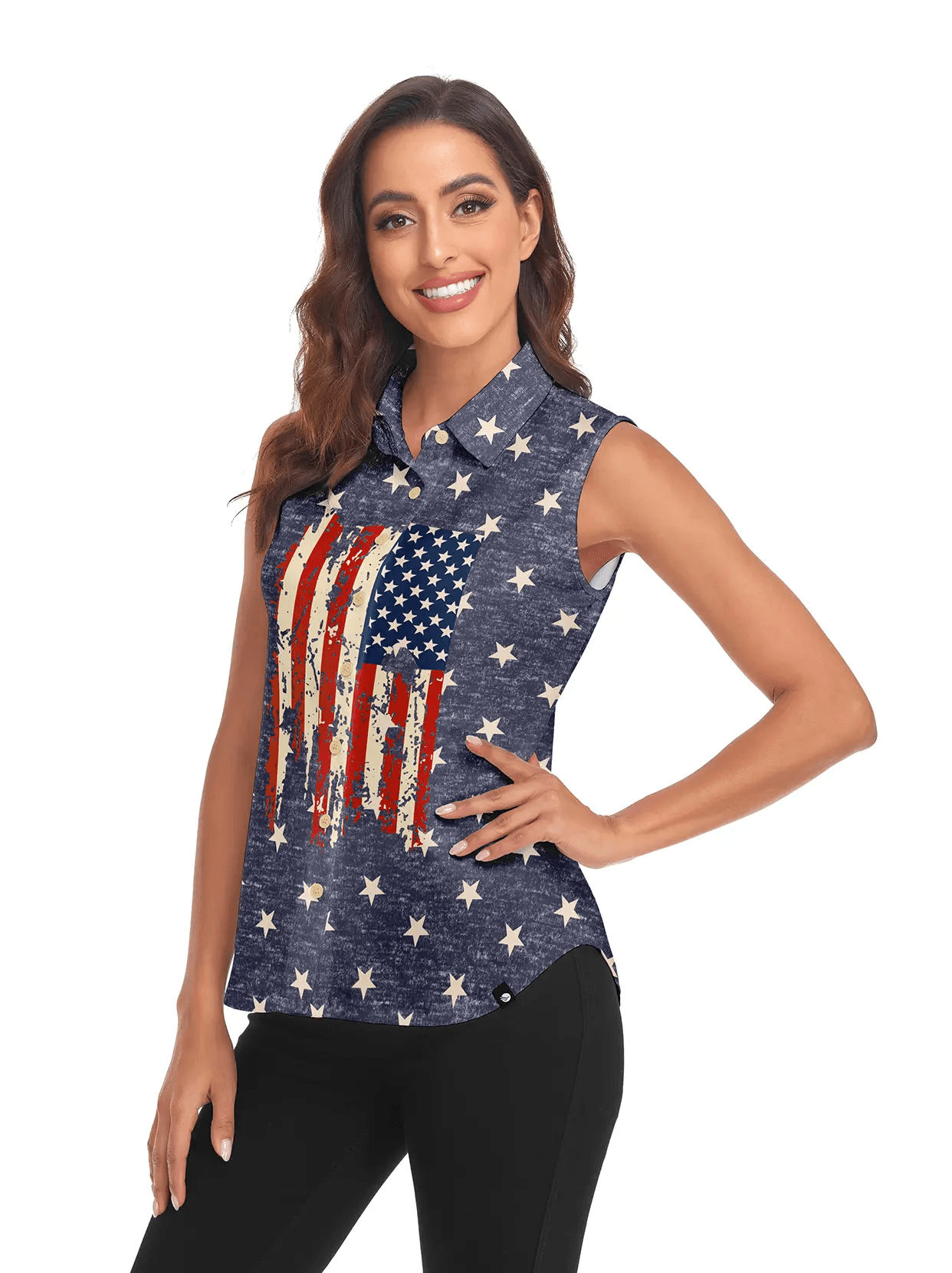 Blue Grey Flag Button down Sleeveless Golf Polo - Suitable for Casual