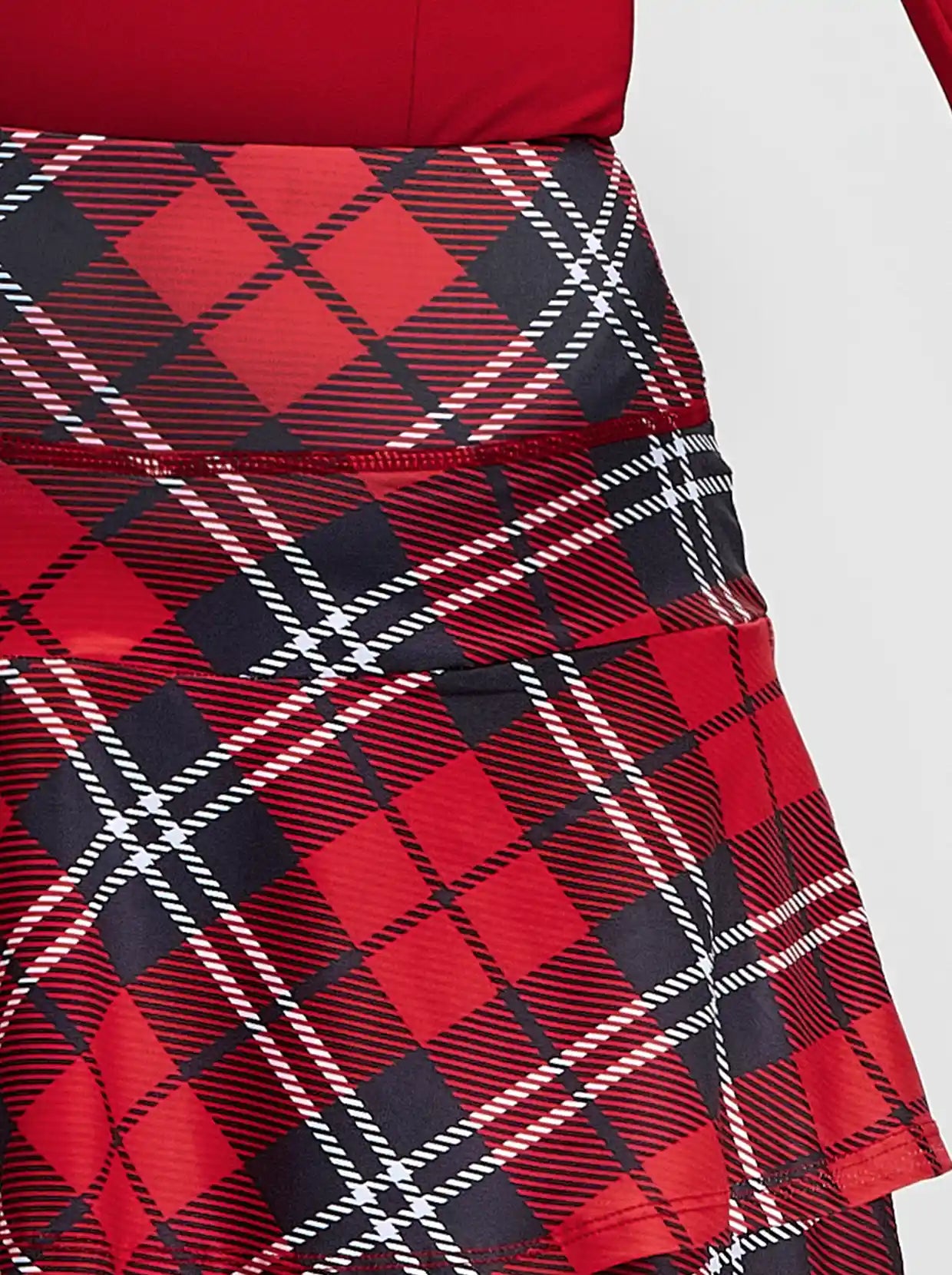 Christmas Red Checkerboard Pleated Athletic Skirted Leggings