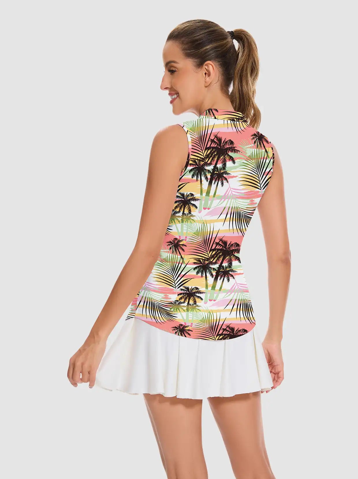 Coconut Tree Quarter-zip Sleeveless Polo Shirt For Women