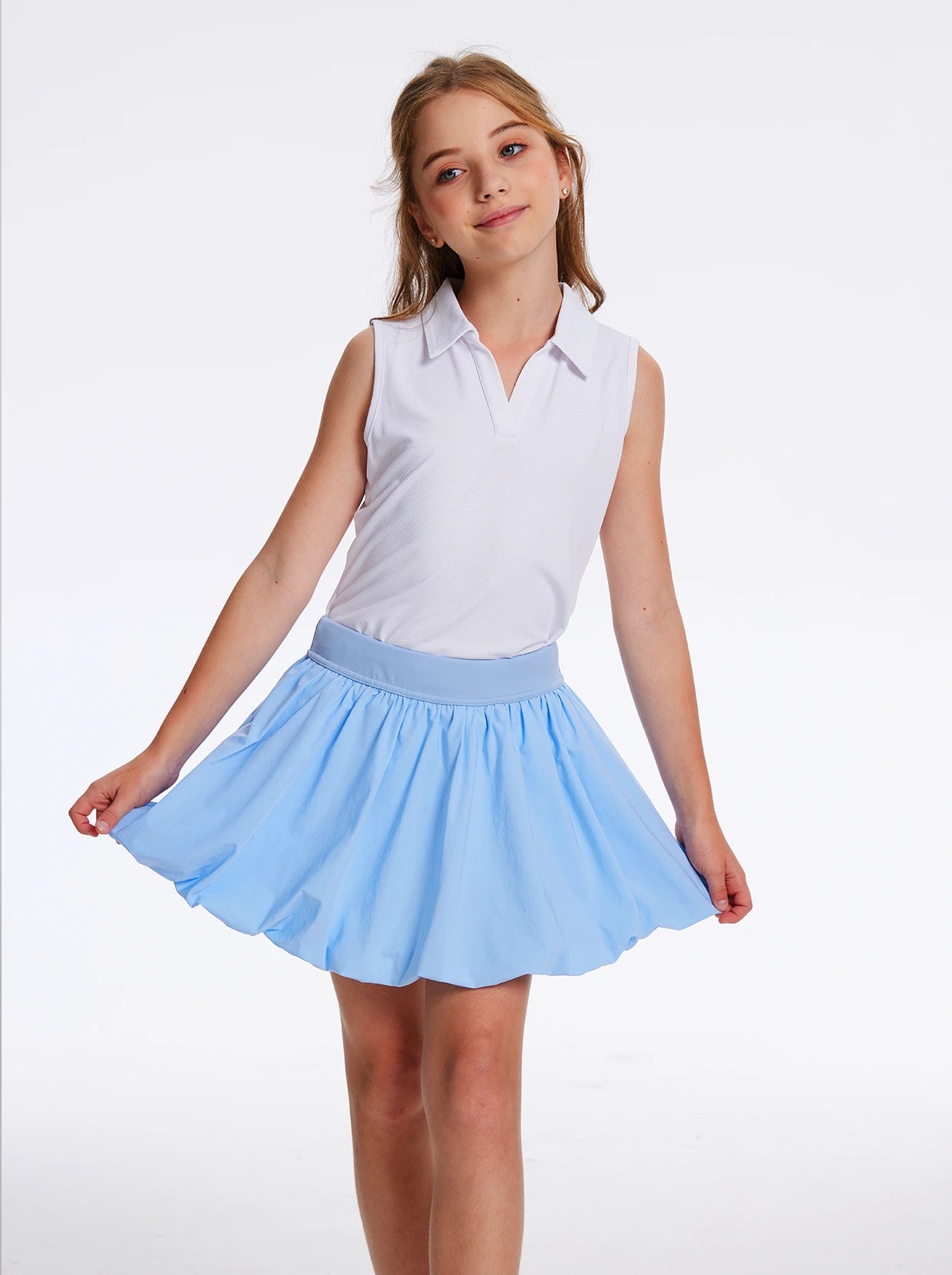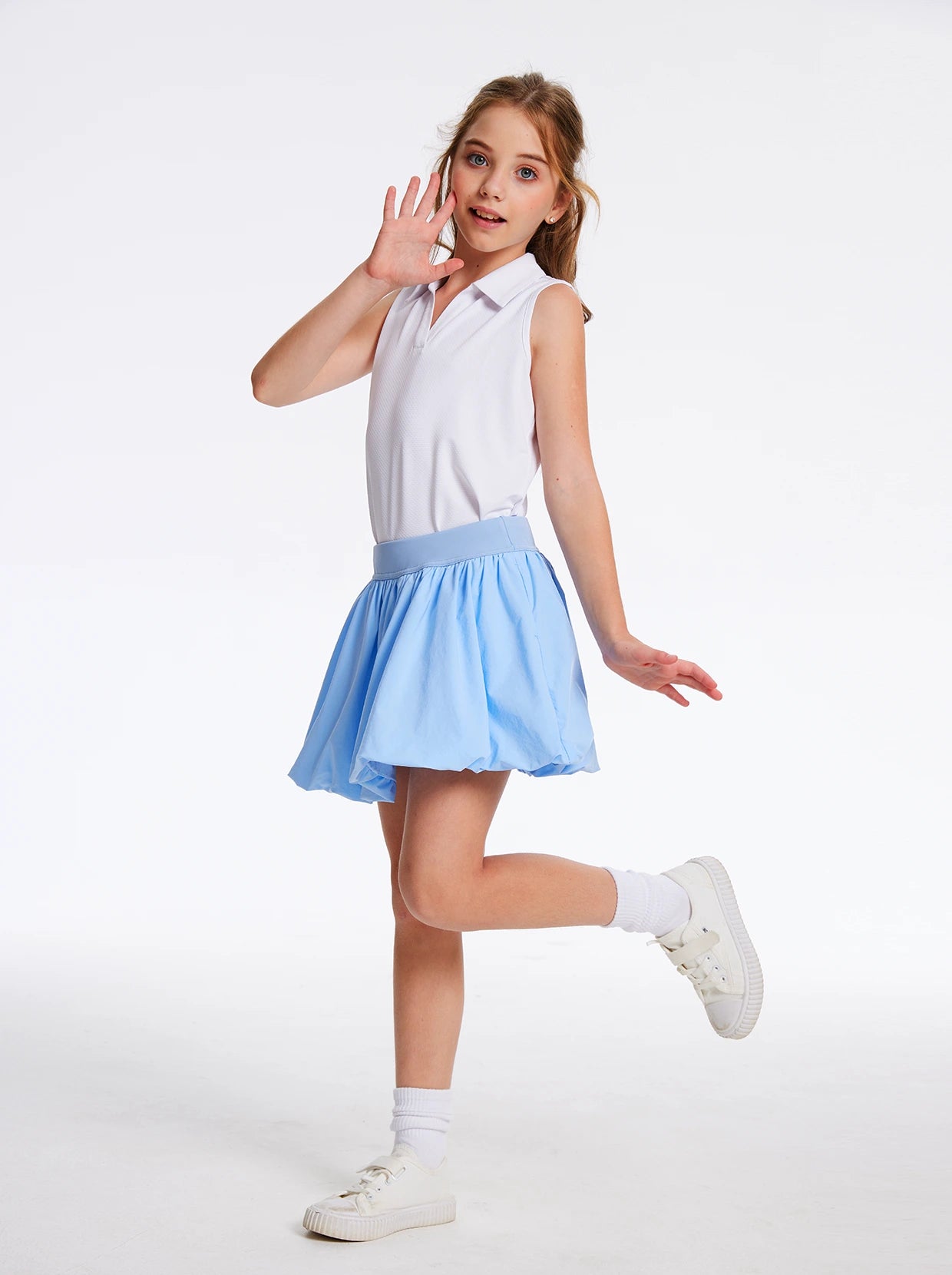 The unique bubble design on our girls' skort adds a playful touch to any outfit. While your child enjoys running, jumping, and playing, the built-in shorts and pockets provide convenience and comfort. Plus, the soft and breathable material with 4-way stretch ensures a perfect fit for girls aged 6-14 years. With lengths XS-XL ranging from 11"-15", this skort is perfect for all-day wear, whether your child is playing outside or just going about their day.