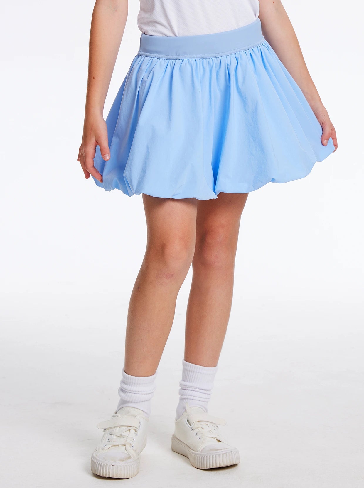 Girl's 12" Solid Blue Bubble Skort with Pockets and Shorts