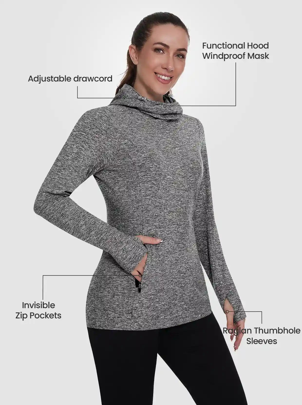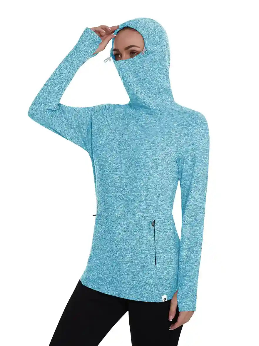 Ladies Hoodies Long-sleeve Thermal Top With Thumb Holes