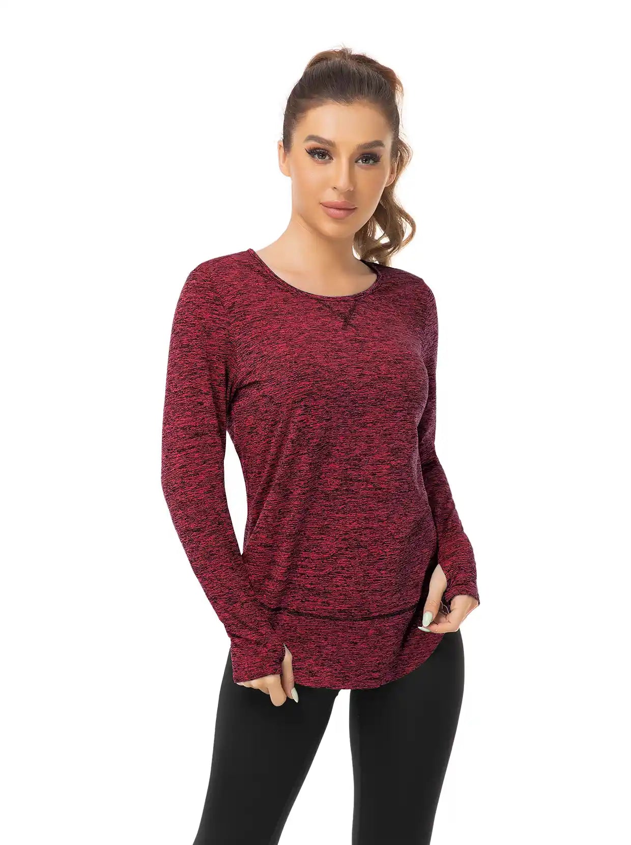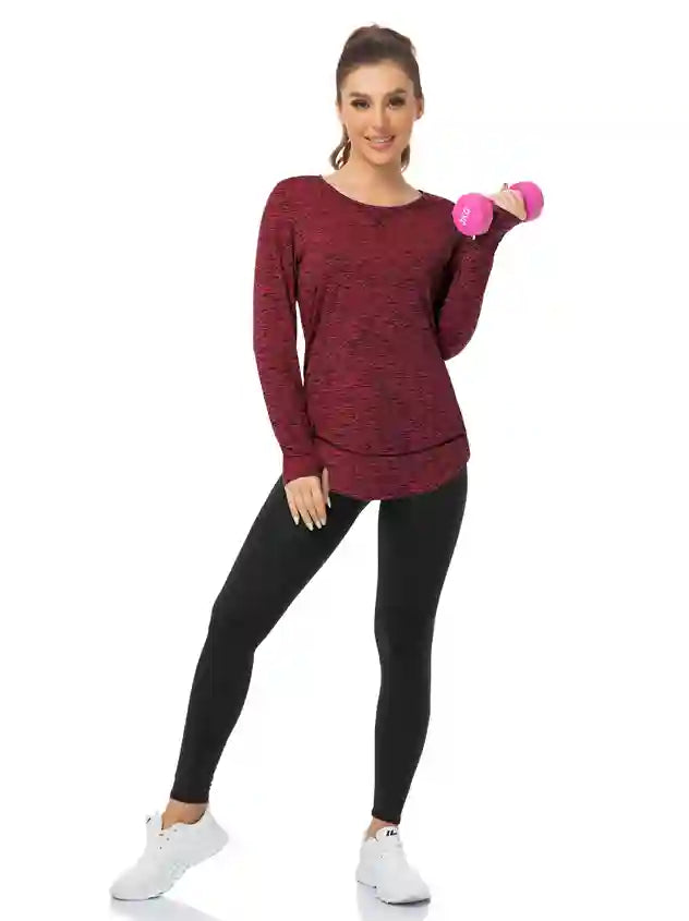 Elevate your workout wardrobe with our stylish Women's Thermal Top. Crafted from soft, quick-drying fabric, this base layer keeps you warm and cool. The 4-way stretch and curved hem offer unrestricted movement, while thumbholes keep the sleeve in place. Perfect for layering or wearing alone