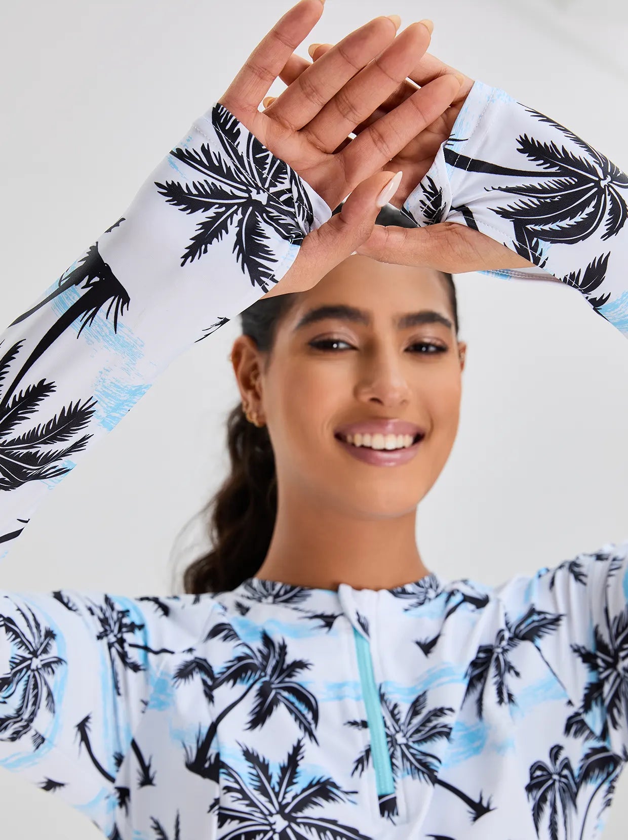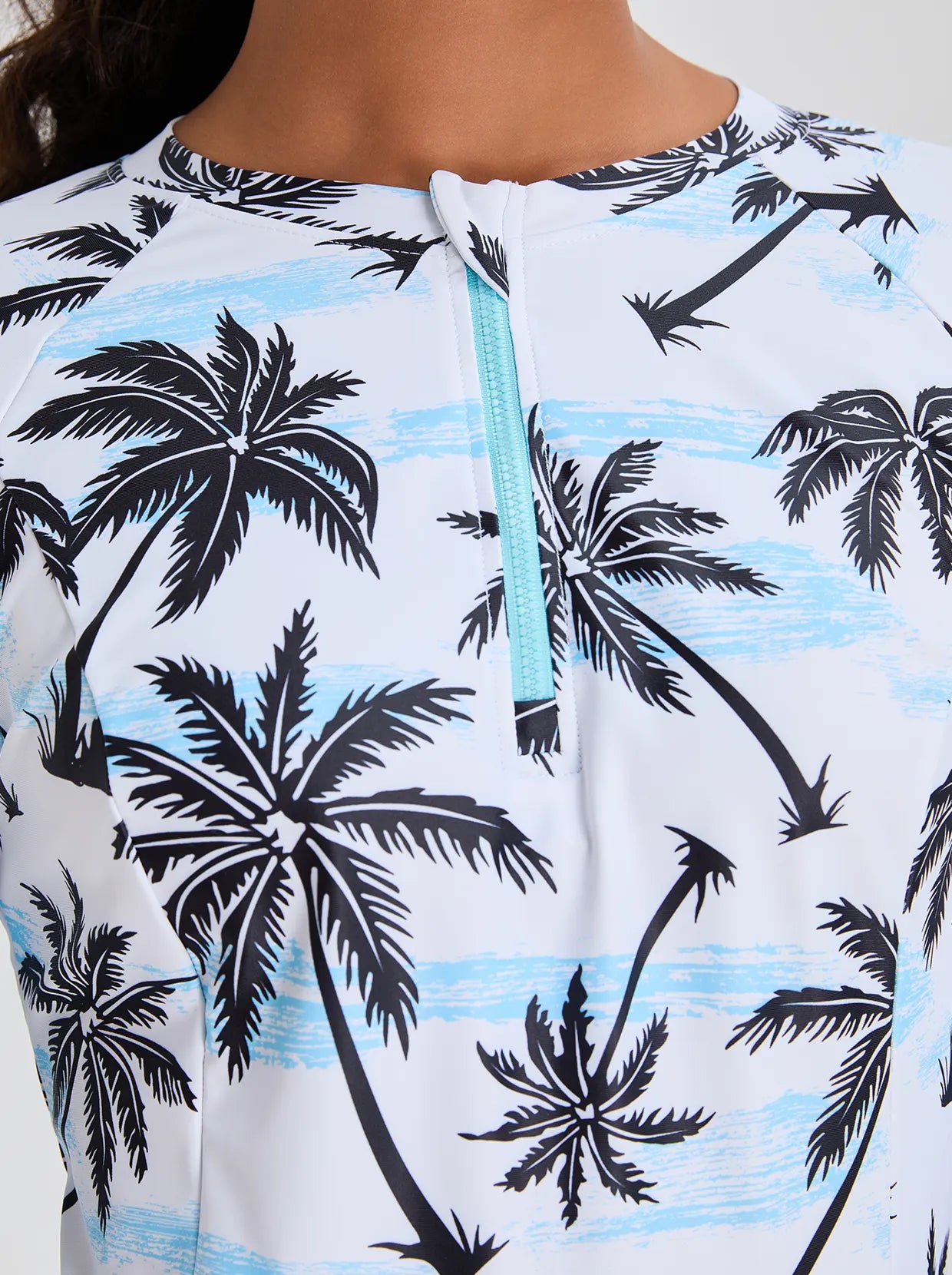 Coconut Tree Quarter-zip Long-sleeve Rash Guard for Ladies