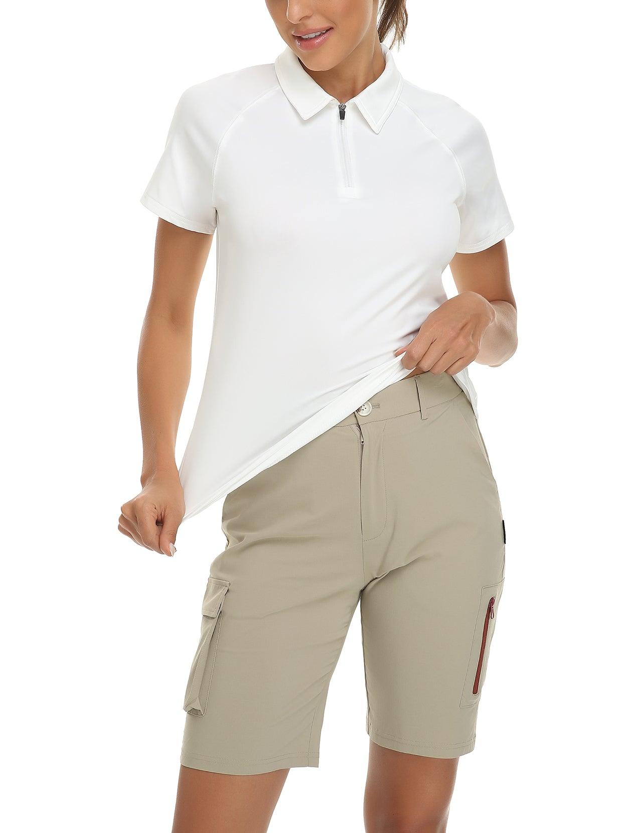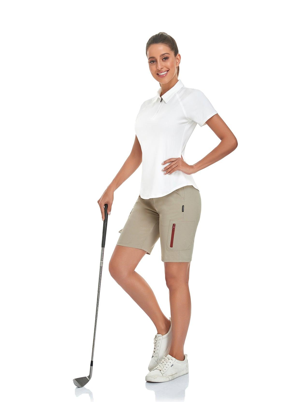 Shop our Ladies' Short Sleeve Golf Polo - White Golfer's Moisture Wicking Athletic Golf Lapel Quarter Zipper Polo Shirt Tennis Shirt Dry Fit.
