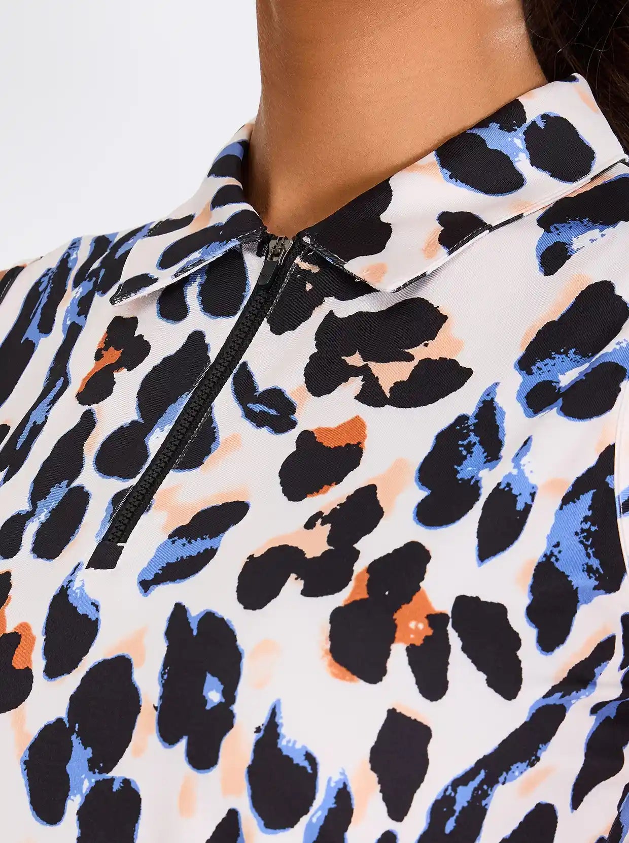 Leopard Print Quartet-zip Sleeveless Polo Shirts For Women