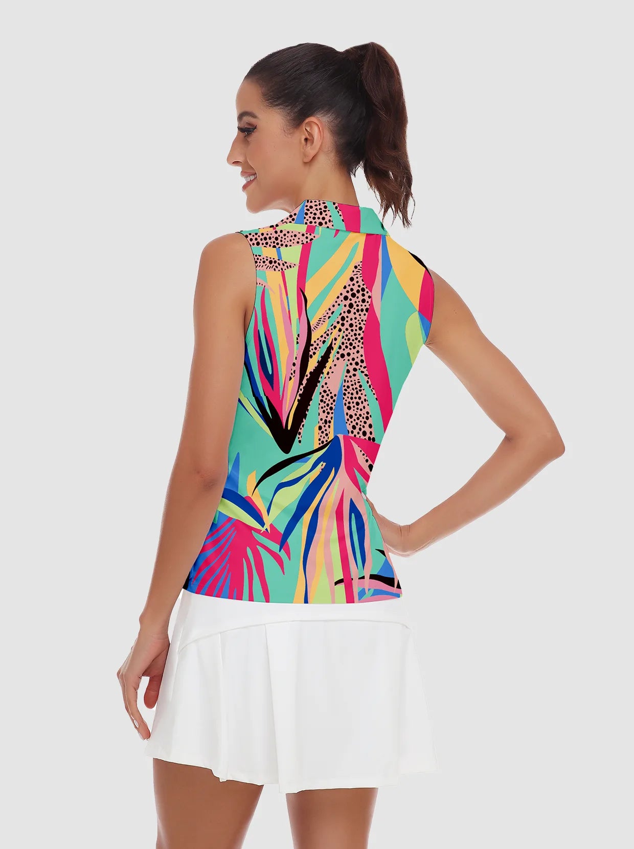 Stay active in style with our Botanical Print V-neck Sleeveless Polo Shirt. This versatile polo is perfect for both the golf course and casual outings. The breathable fabric and moisture-wicking technology keep you cool and comfortable, while the intricate botanical print adds a touch of elegance. The V-neckline and sleeveless design offer a flattering fit, while the streamlined fit provides maximum range of motion. With its multiple sizes, this polo is sure to be a favorite in your wardrobe.