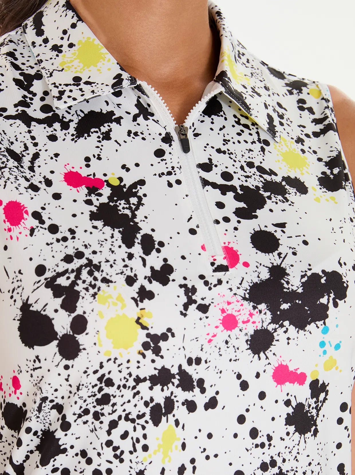 Women's Ink Splatter Print Quarter-zip Sleeveless Polo Shirt