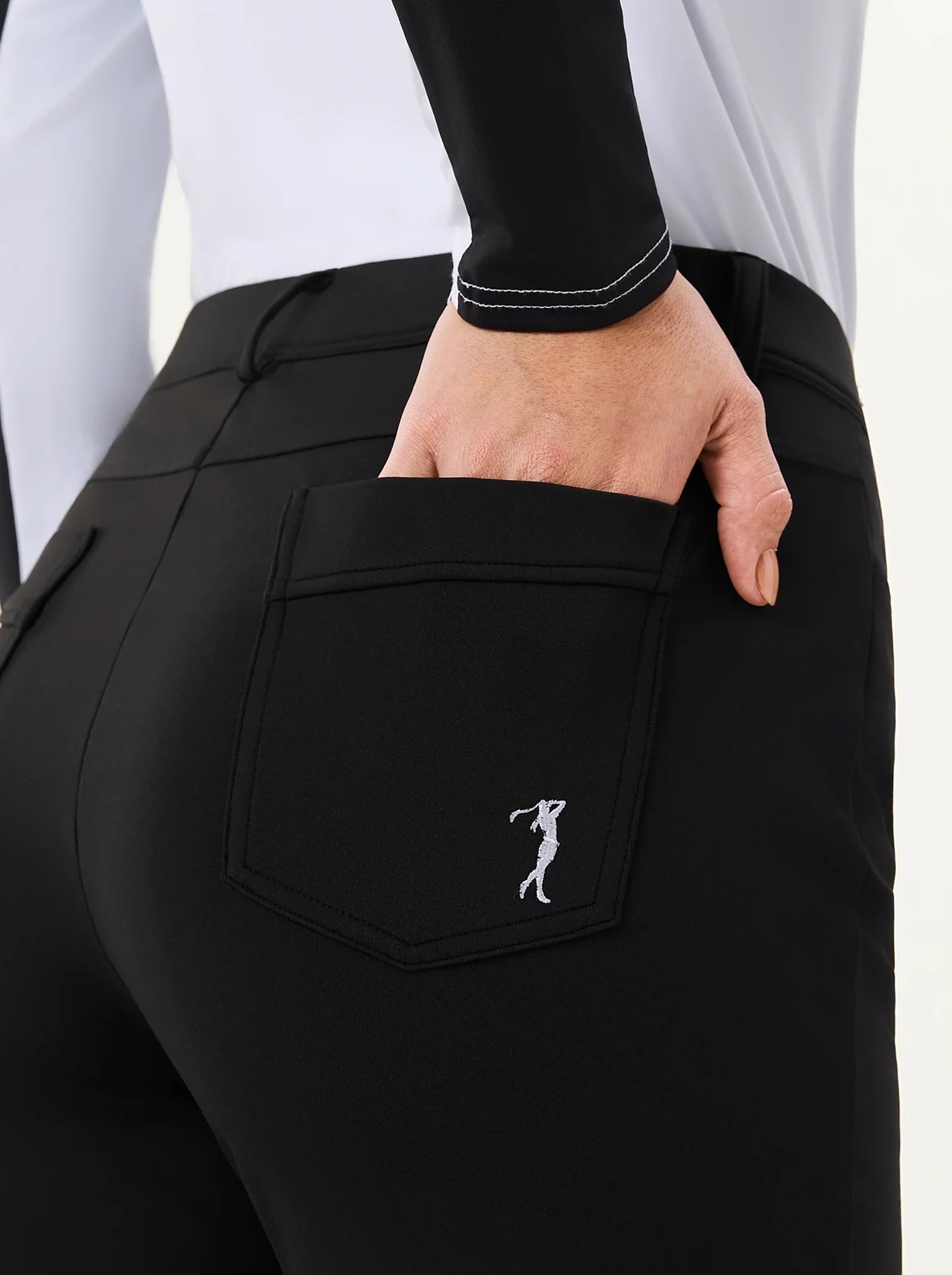 Swing into comfort with our thermal golf pants that blend performance with style. The high-elastic fabric moves with you through every shot, while the cozy fleece lining keeps the chill at bay. A white embroidered golfer pattern adds personality to the back, while the button-zip fly and belt loops deliver that polished, traditional trouser look.