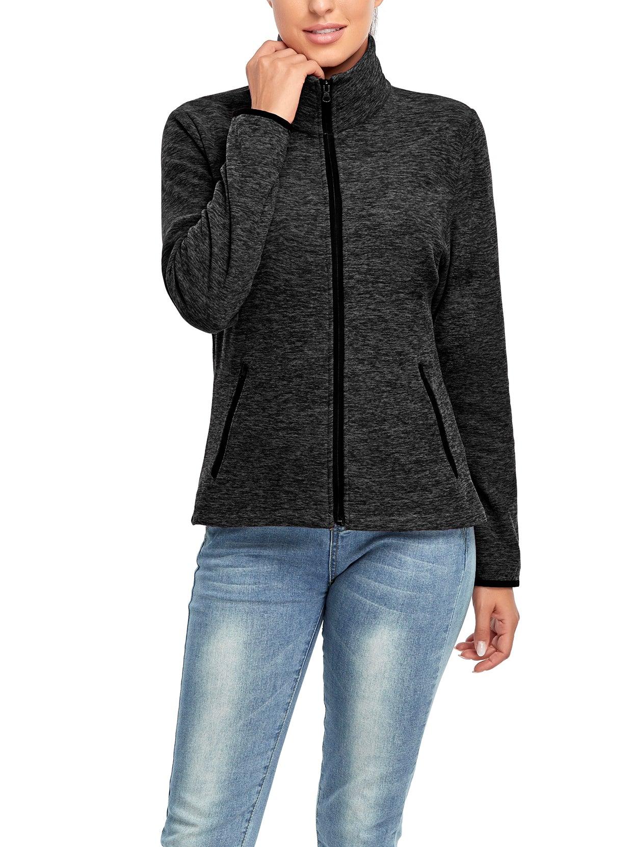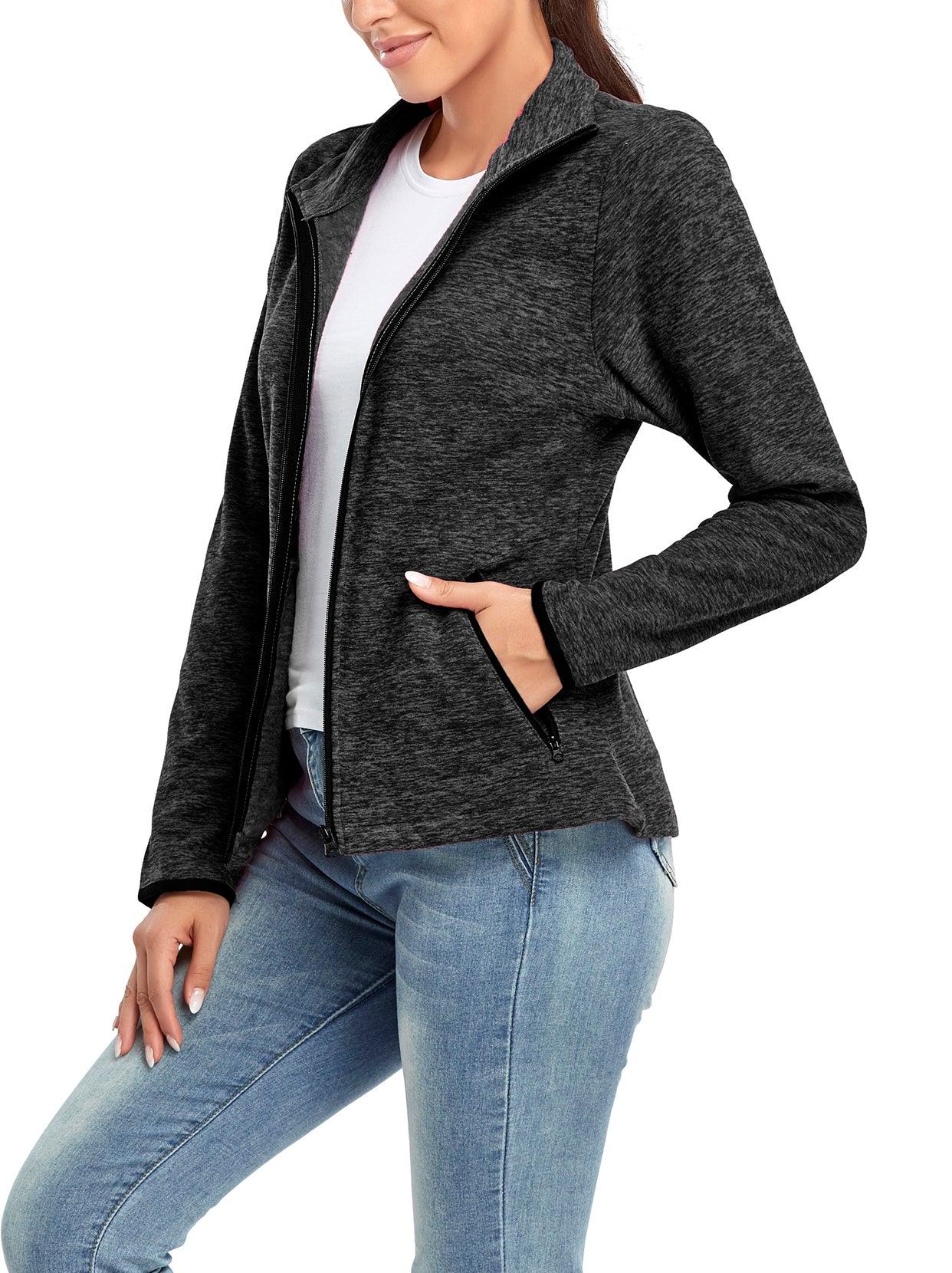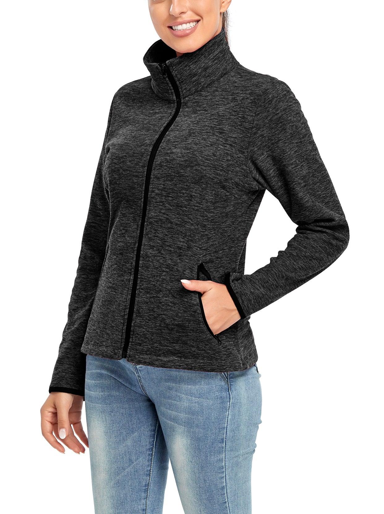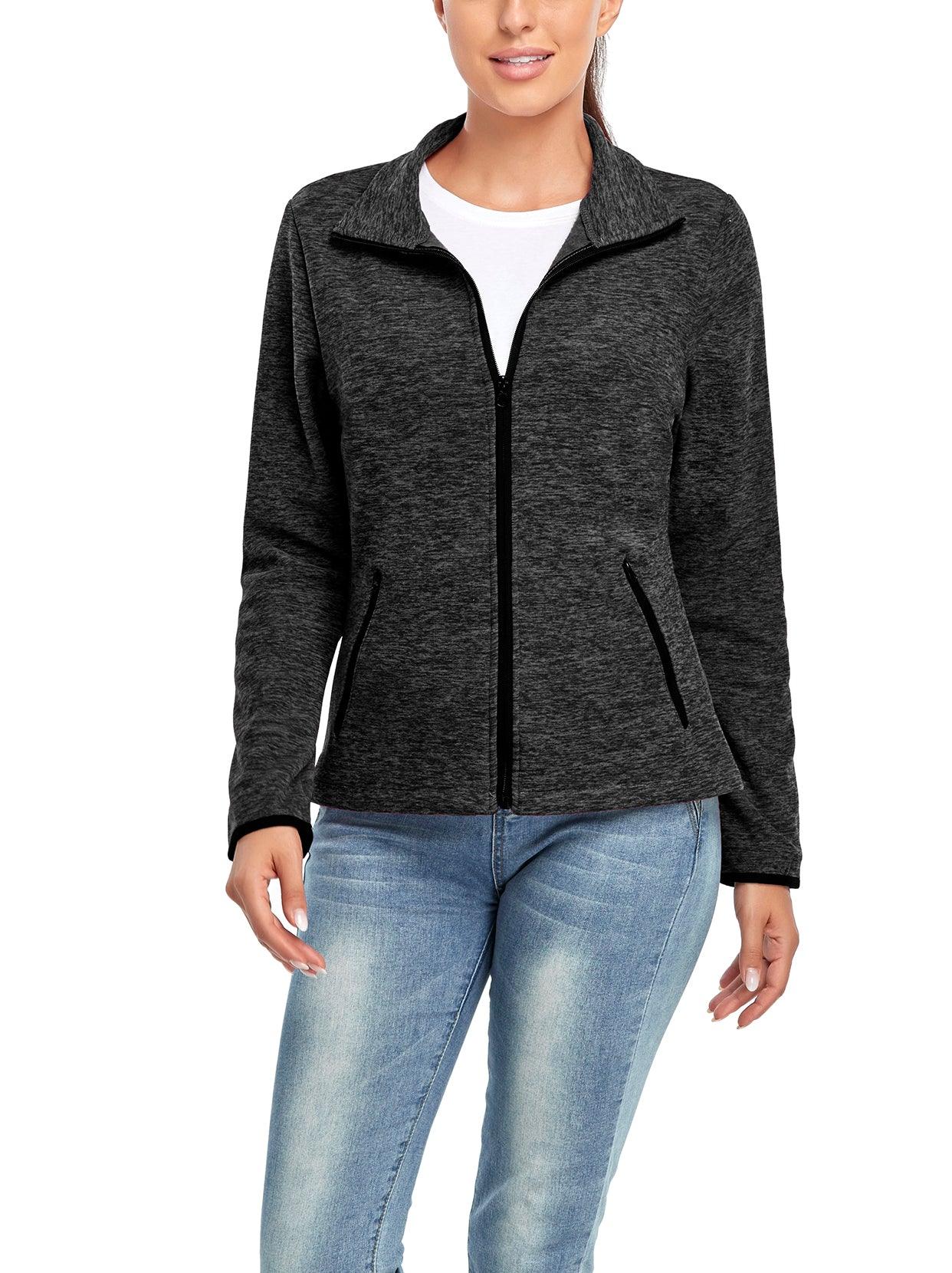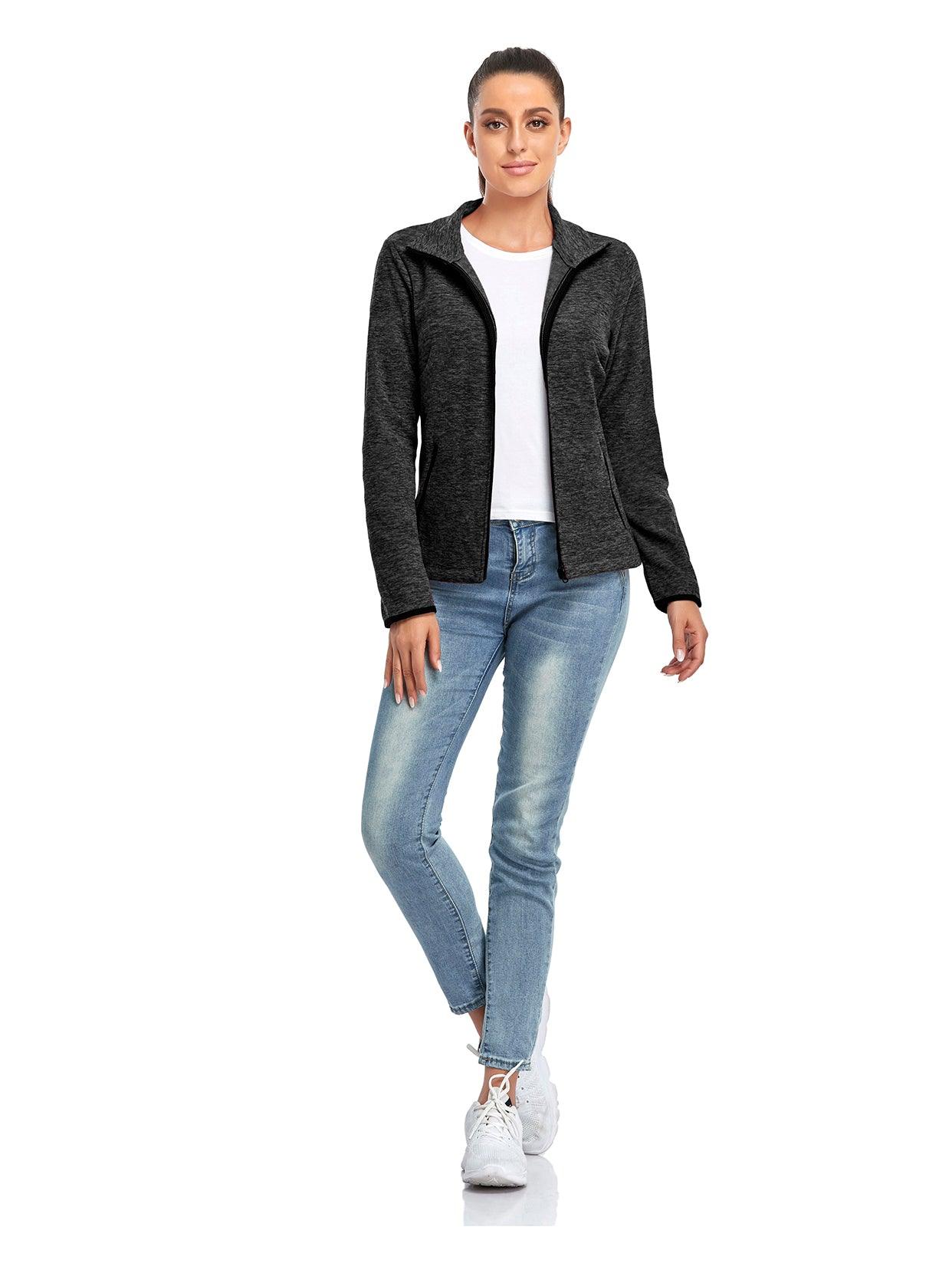 Dark Grey Full-zip Long-sleeve Fleece Jacket For Women