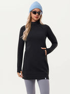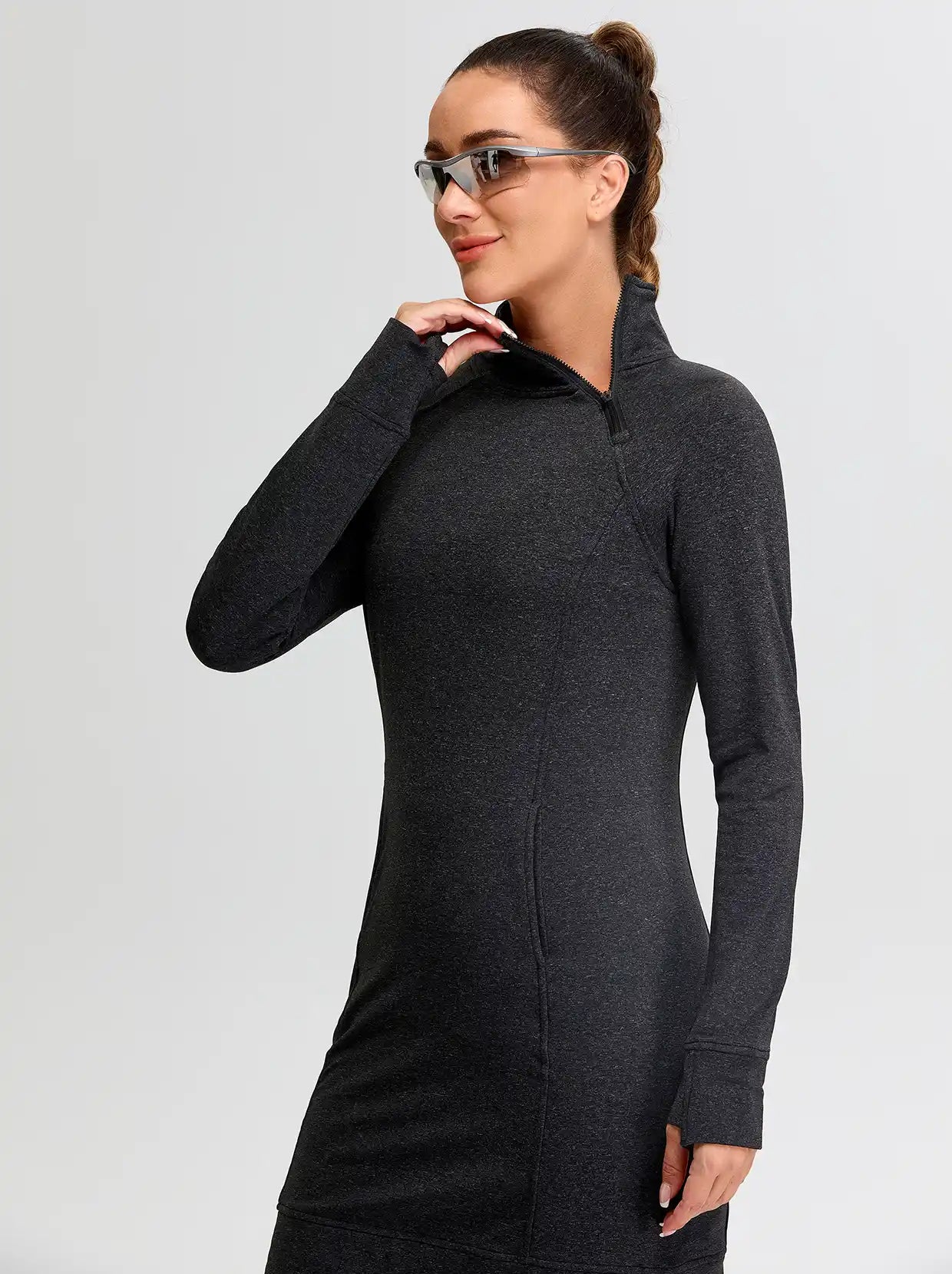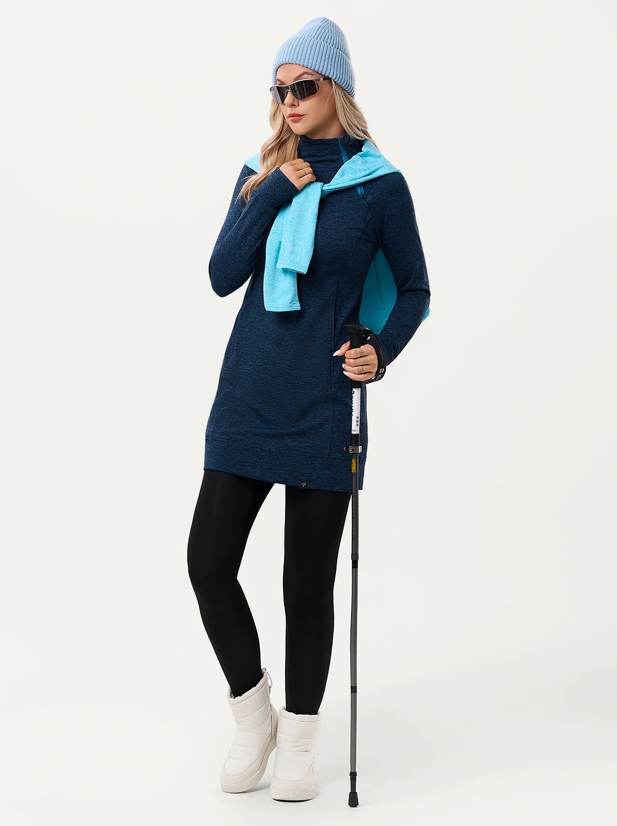 Ladies Side-zip Long-sleeve Thermal Dresses with Pockets