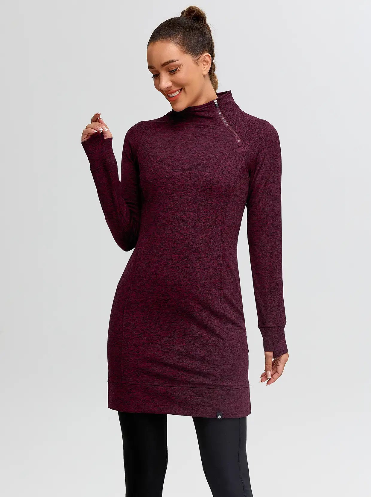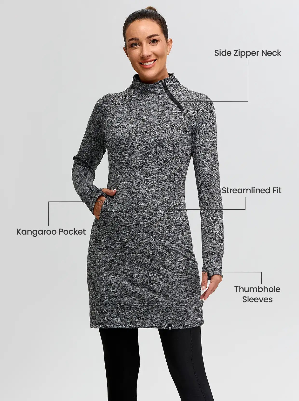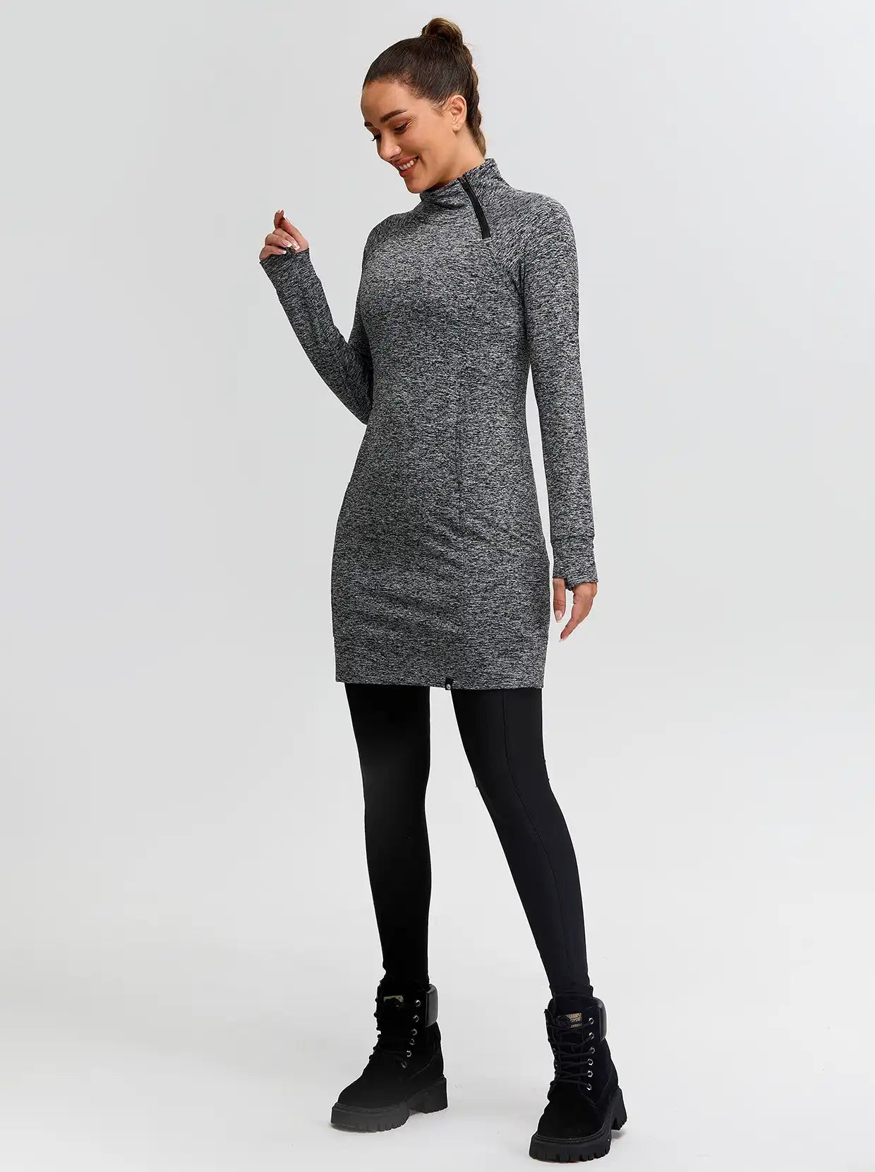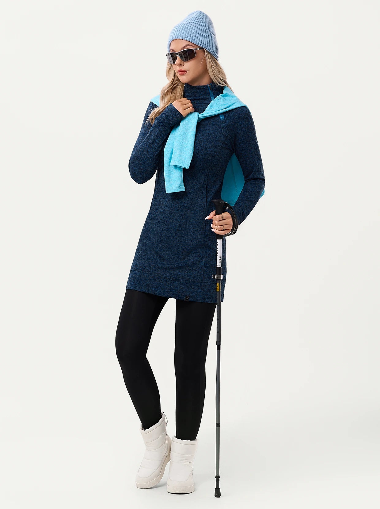 Enjoy your time outdoors! The fleece dress features soft fabric and fleece lining, keeping your body warm and comfortable. The side zipper design offers an added cover for the neck, and the stretchy material provides great freedom outdoors. Thumb holes ensure the sleeves stay securely in place, preventing any unwanted movement during exercises.