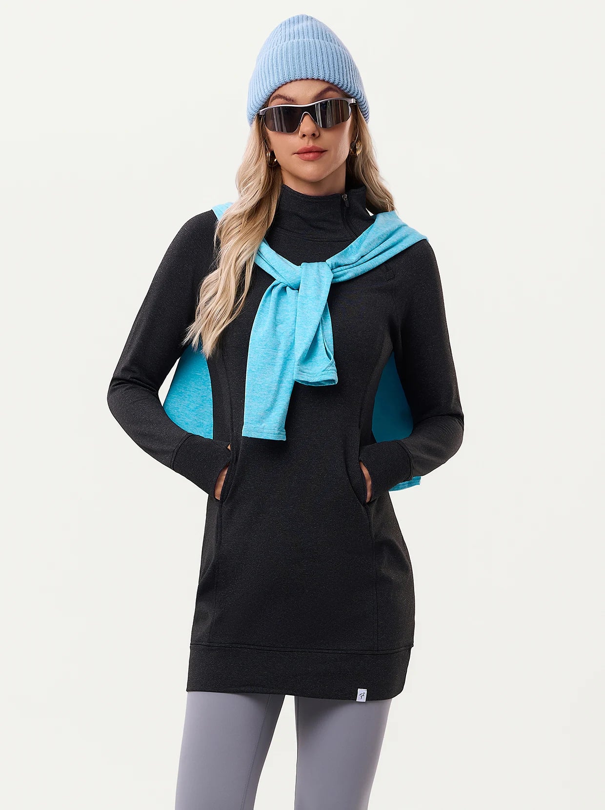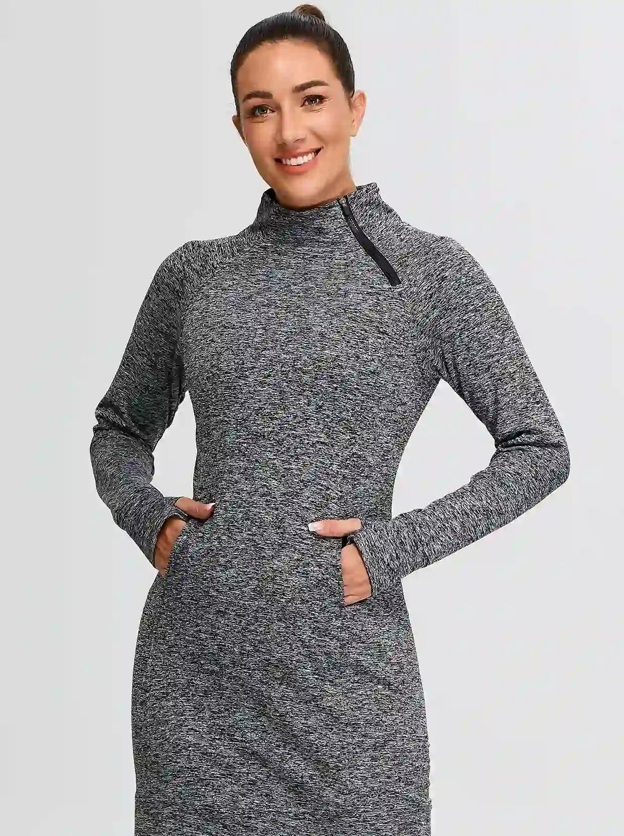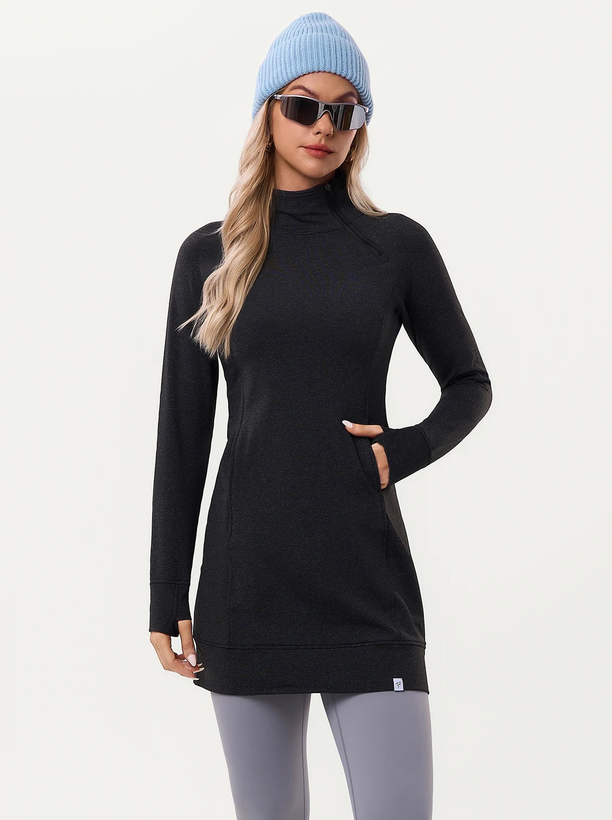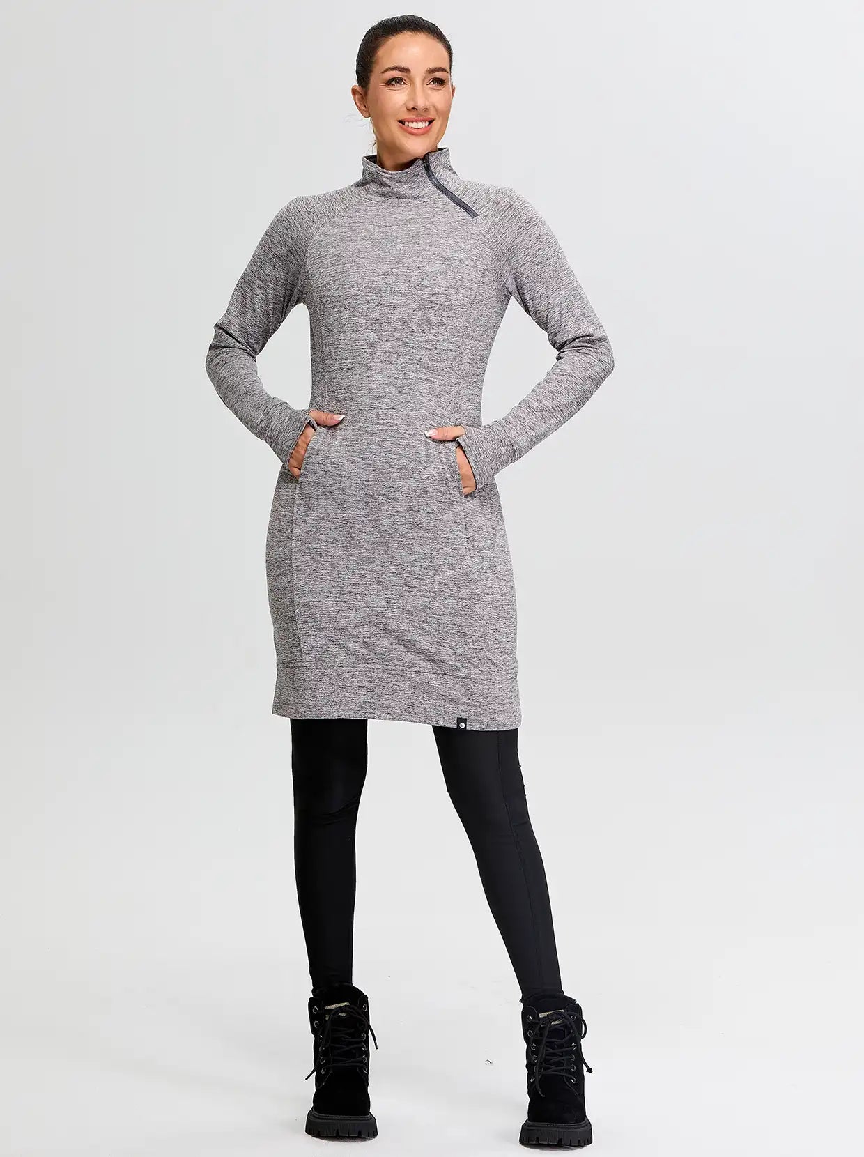 Enjoy your time outdoors! The fleece dress features soft fabric and fleece lining, keeping your body warm and comfortable. The side zipper design offers an added cover for the neck, and the stretchy material provides great freedom outdoors. Thumb holes ensure the sleeves stay securely in place, preventing any unwanted movement during exercises.