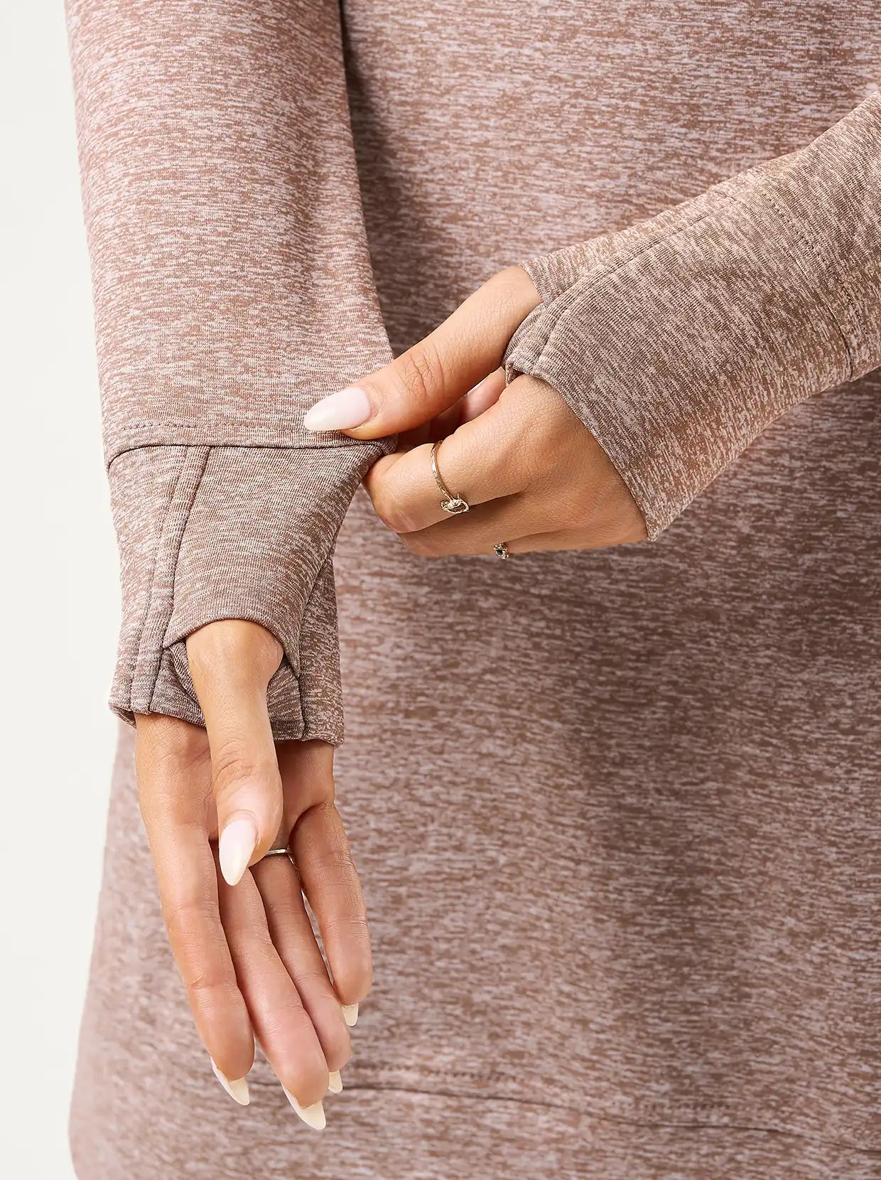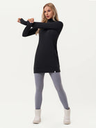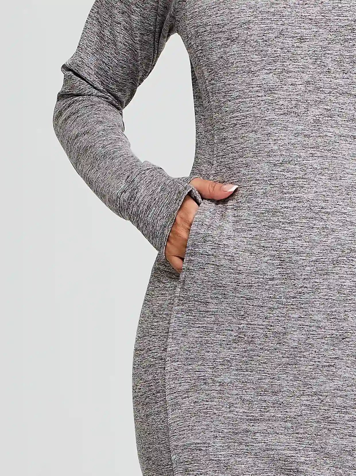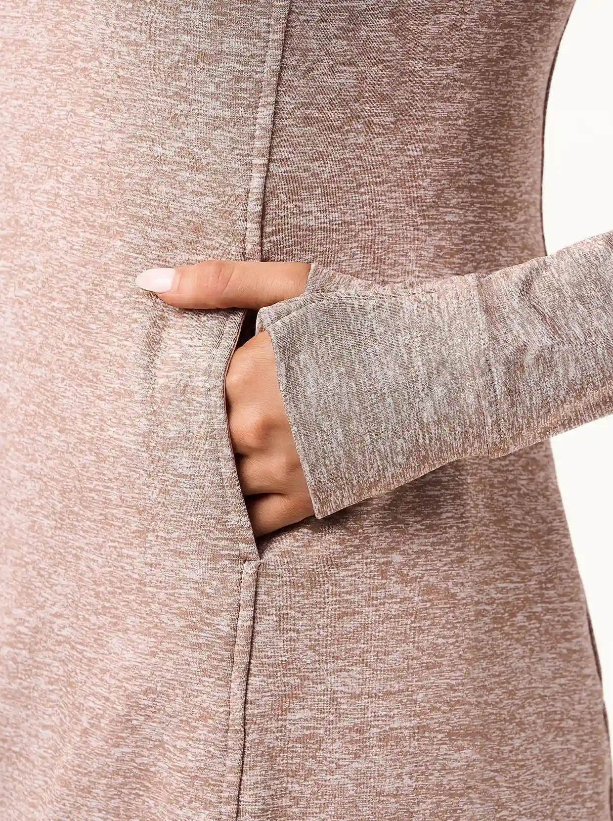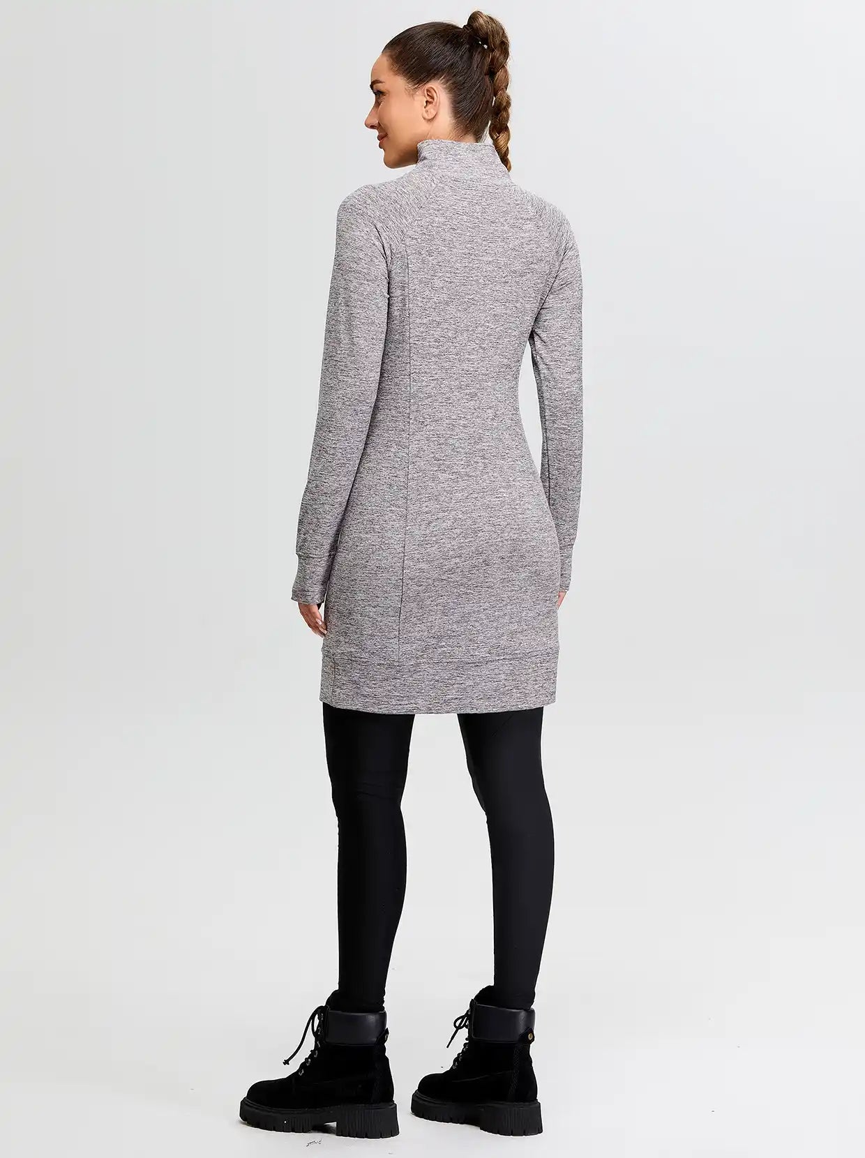 Side-zip 35" Mock Neck Long-sleeve Fleece Dresses