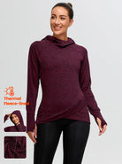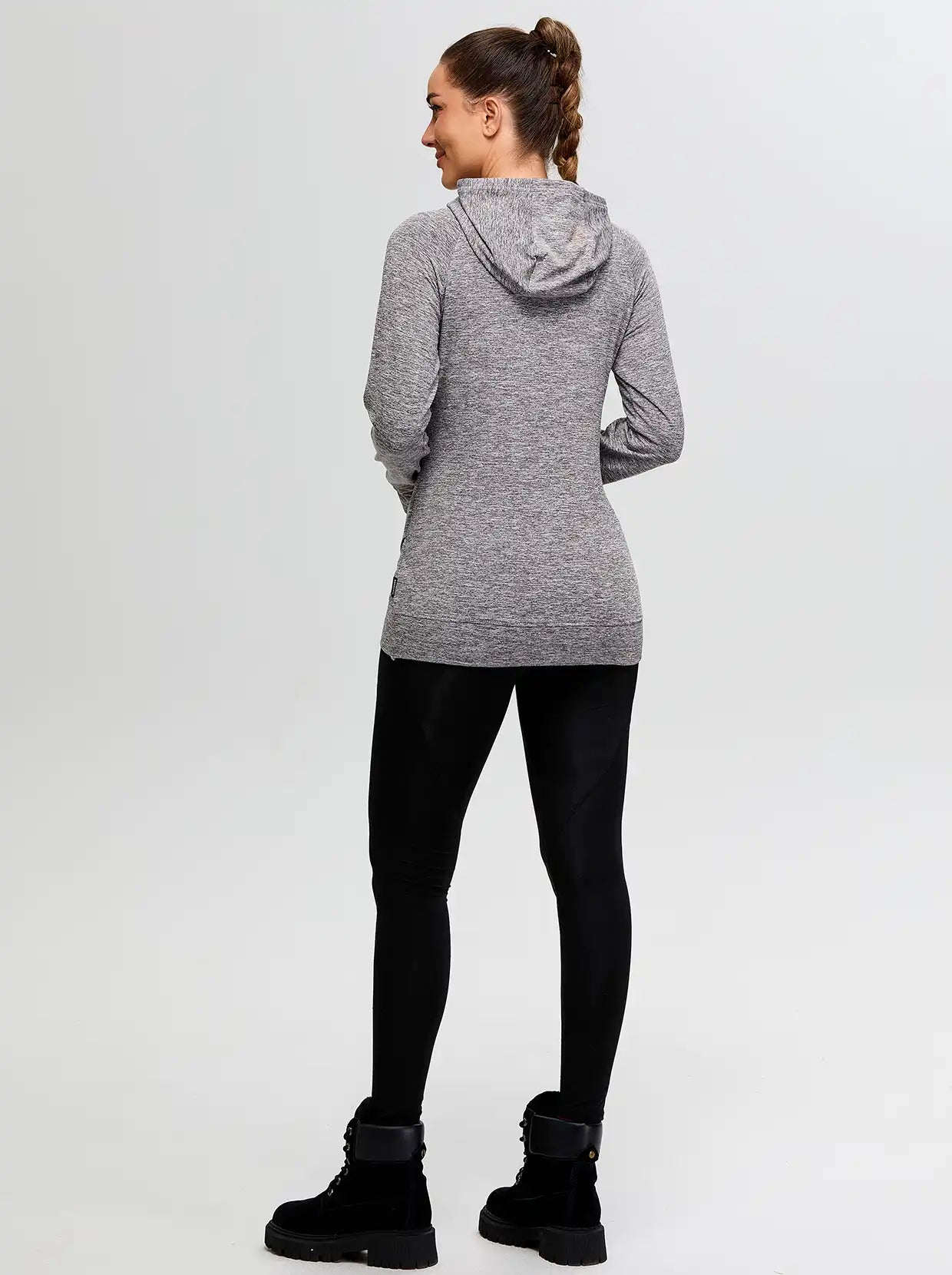Stay warm, and move free. Our thermal pullover is designed for comfort and performance. The moisture-wicking, quick-dry fabric keeps you warm and dry, while the 4-way stretch allows unrestricted movement. The thumbhole design and flattering crossed hem add a touch of style and extra warmth, making it perfect for any outdoor activity.