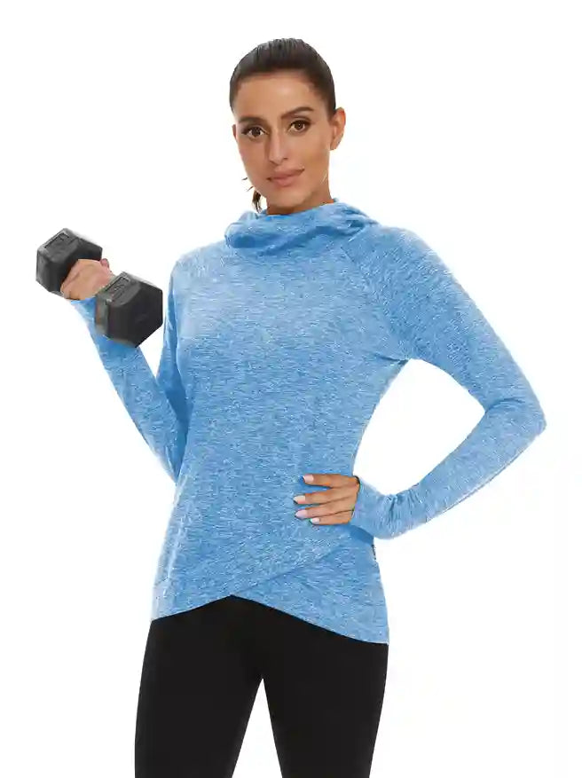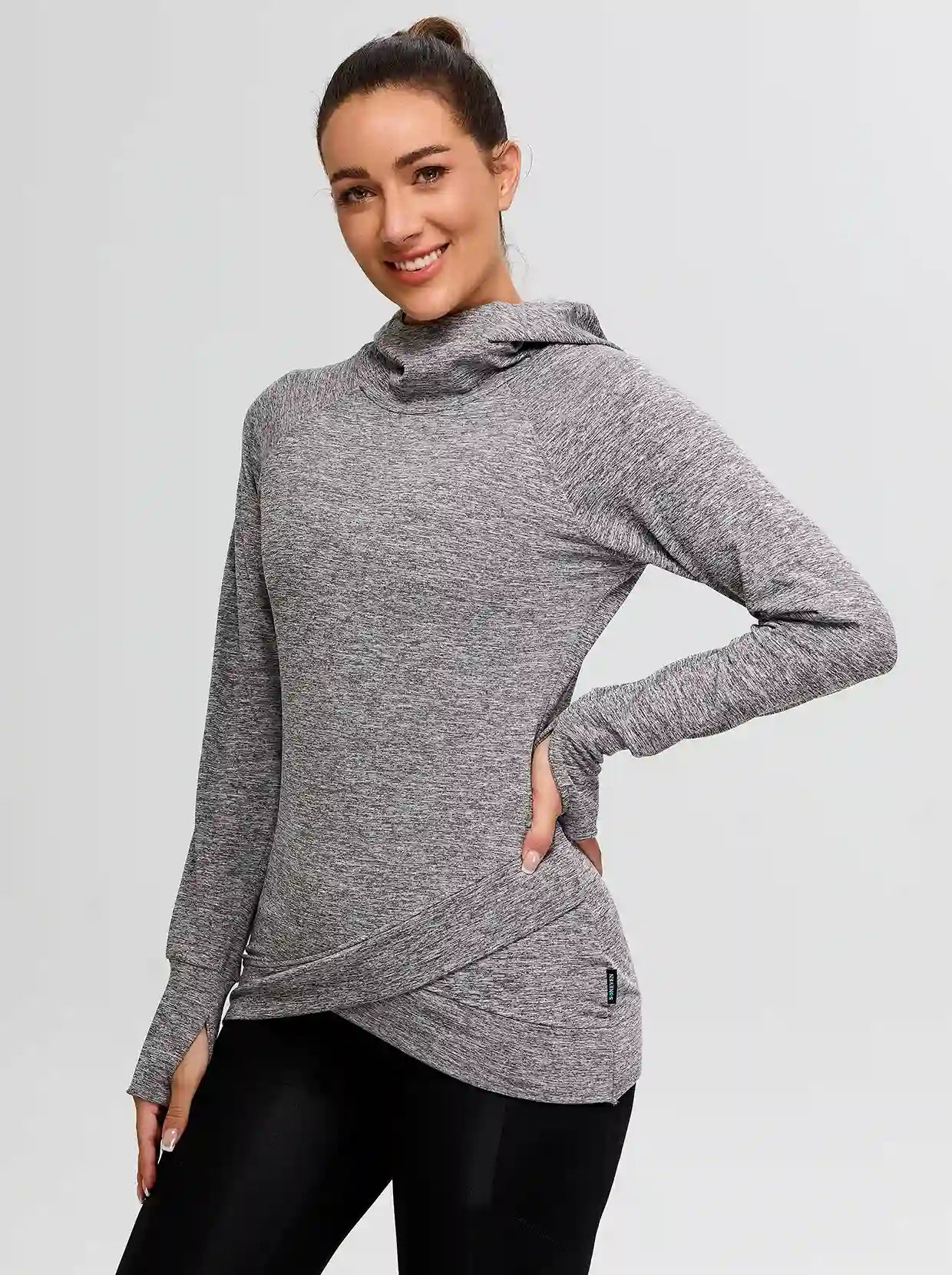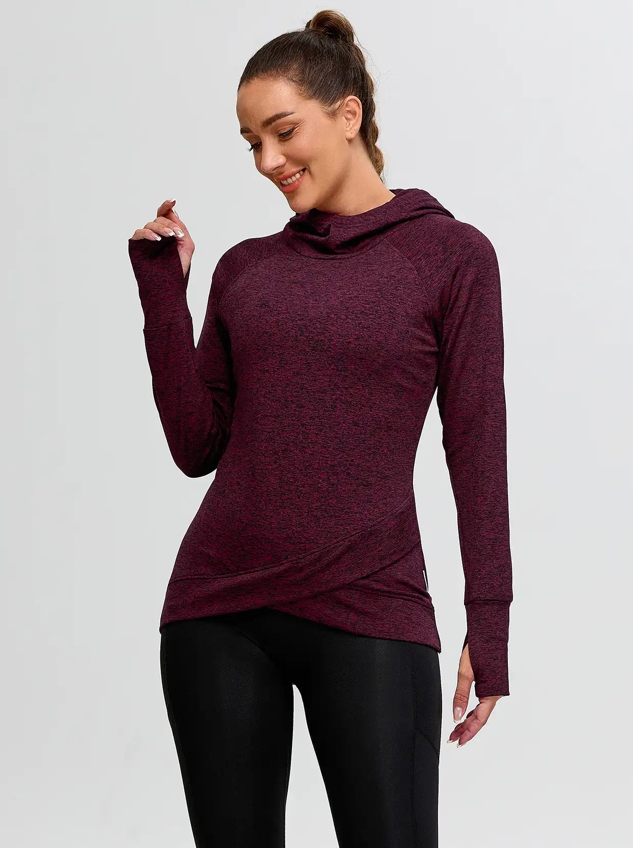Hoodie Crossed Hem Long-sleeve Thermal Tops