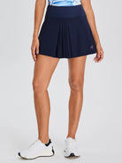 16" Navy Tummy Control Elastic-waistband Pleated Skorts with Pockets and Shorts