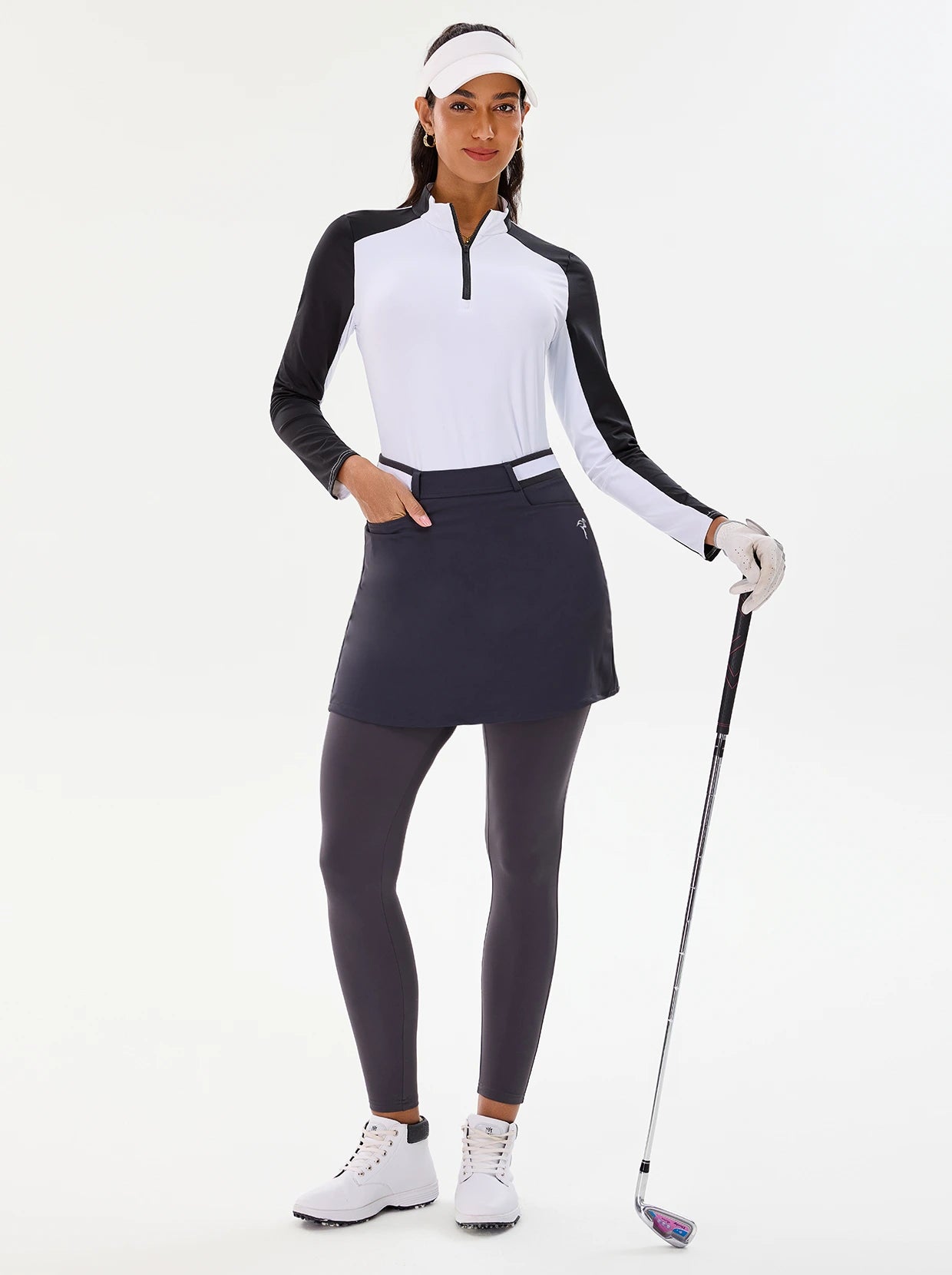 Meet your new athletic essential: our skirted leggings that actually keep up with your game. The four-way stretch fabric hugs you in all the right ways, while the elastic waistband with side zipper provides a comfortable fit. UV protection shields you on the course or court, and the soft, wrinkle-resistant material means less time fussing and more time playing.