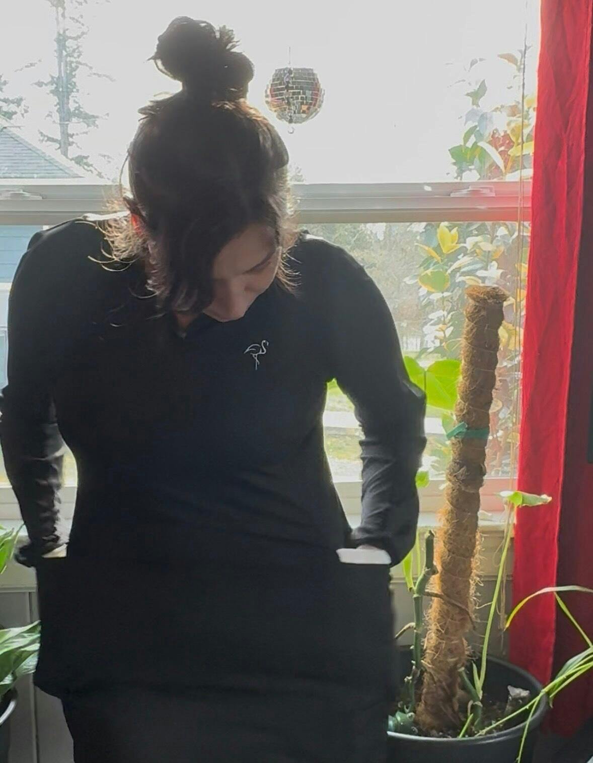 Breathable Black 34.5" Long-sleeve Active Dress with Pockets with Shorts