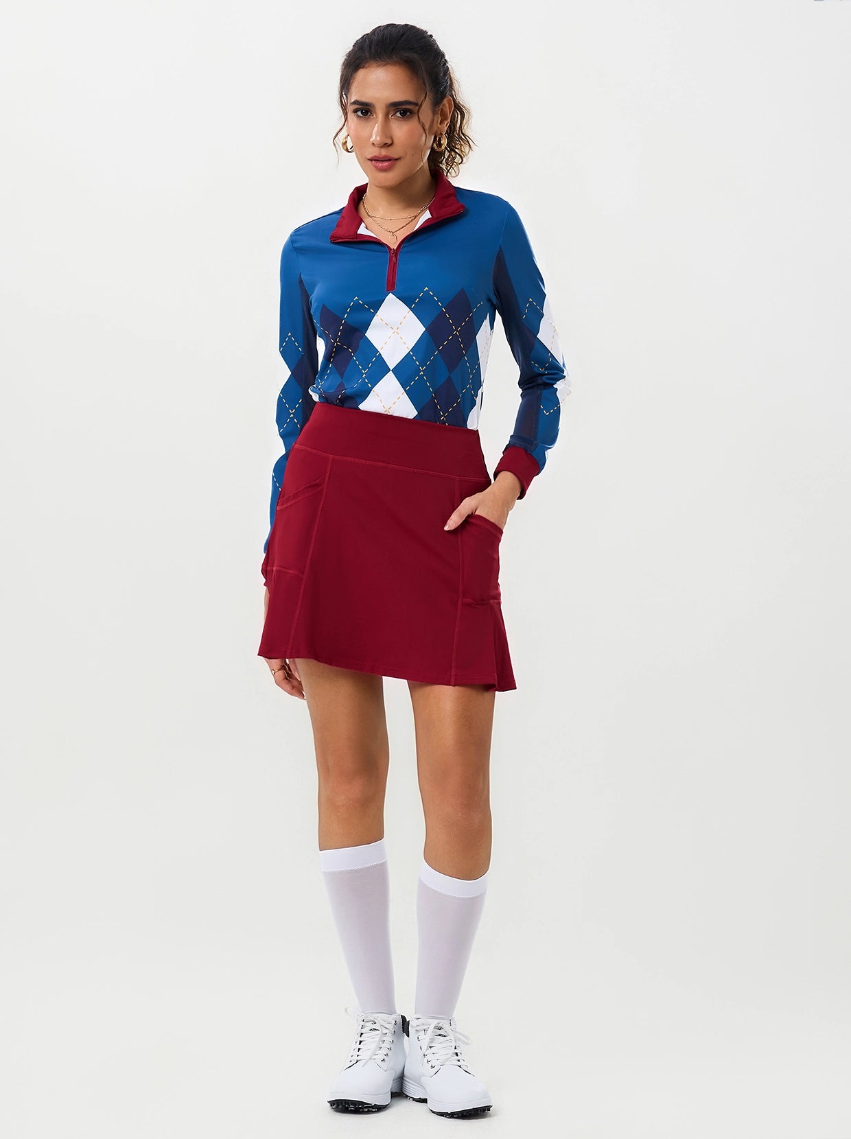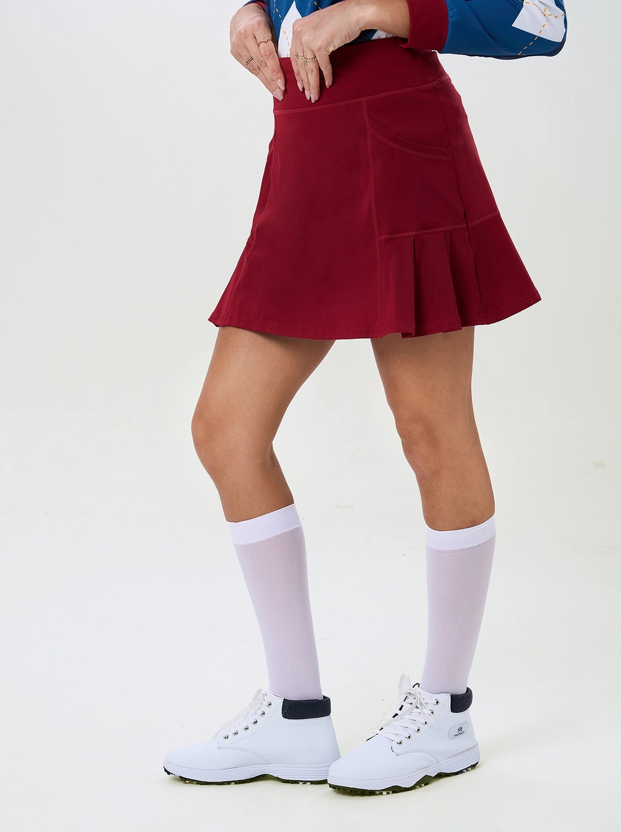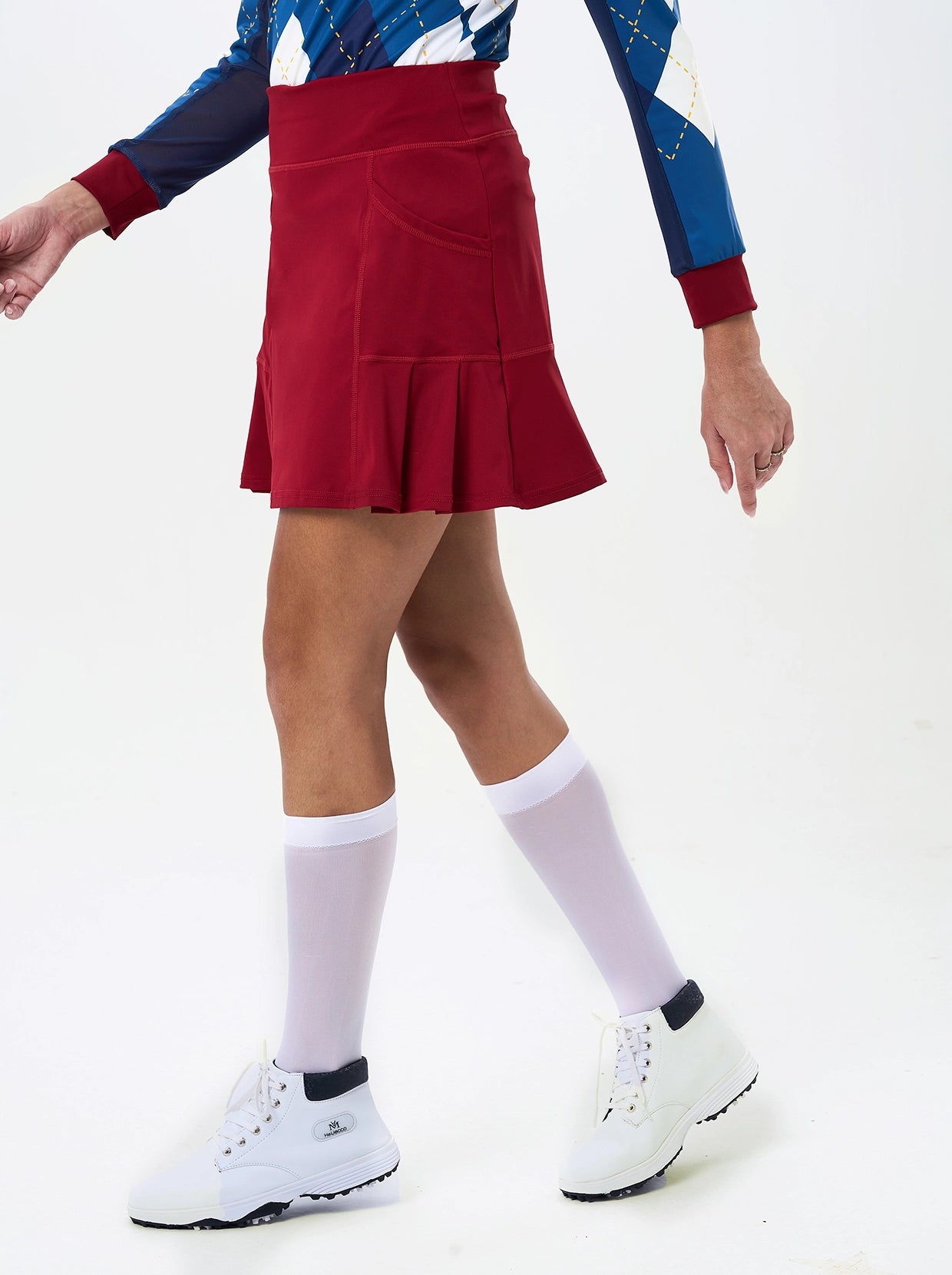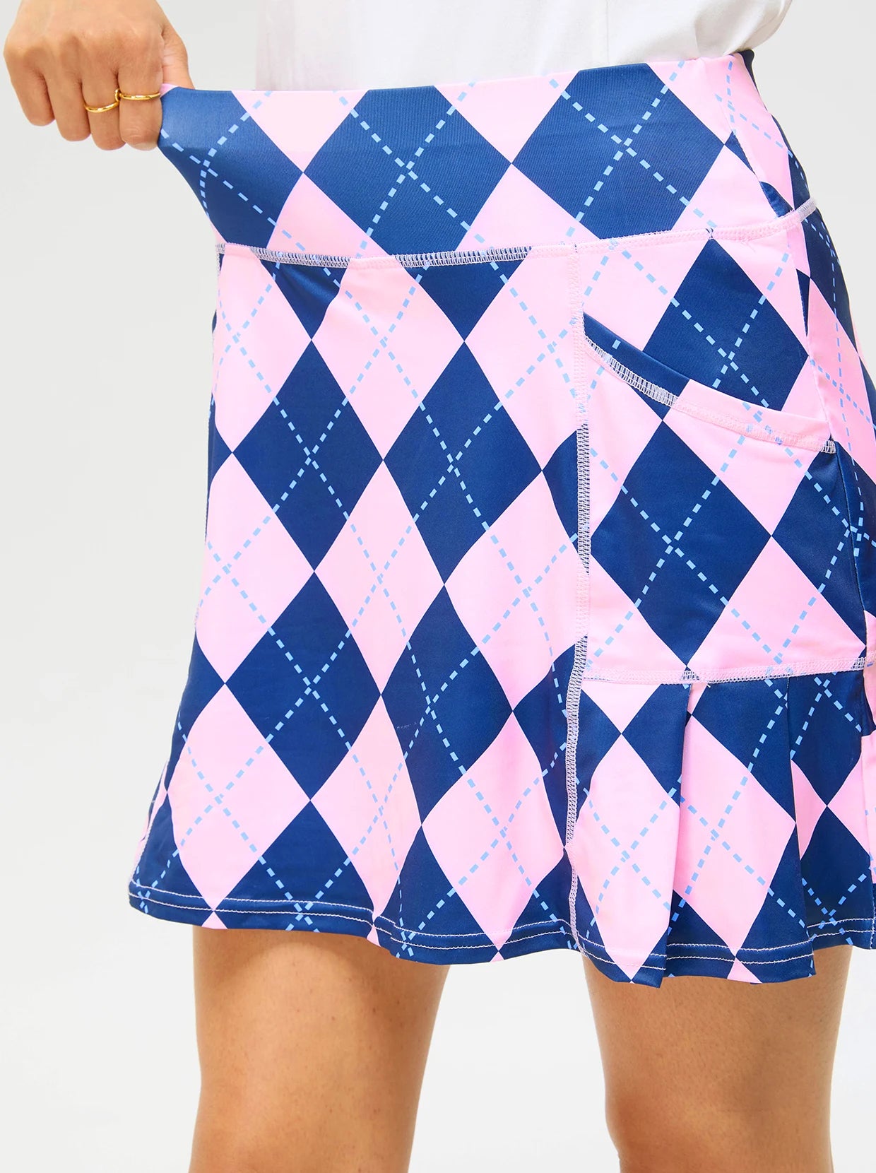 Look and feel great in our 17" Pink Pleated Skort! This eye-catching checkerboard print skort features a classic pleated design and is crafted from soft, breathable, and moisture-wicking fabric with 4-way stretch for ultimate comfort. Built-in shorts and convenient pockets make it perfect for tennis, golf, pickleball, or everyday wear.