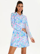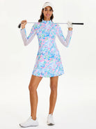 Bye-bye, sweaty arms! Step into a vibrant spring day with our Pink & Blue Spring Scenery Stand-collar Dress! Crafted from breathable, stretchy fabric, it ensures a full range of motion and ultimate comfort. Featuring half-breathable mesh sleeves and built-in shorts, perfect for golf, tennis, pickleball, or bringing a touch of nature's beauty to your daily wear.Prints & Patterns: Spring Scenery pattern