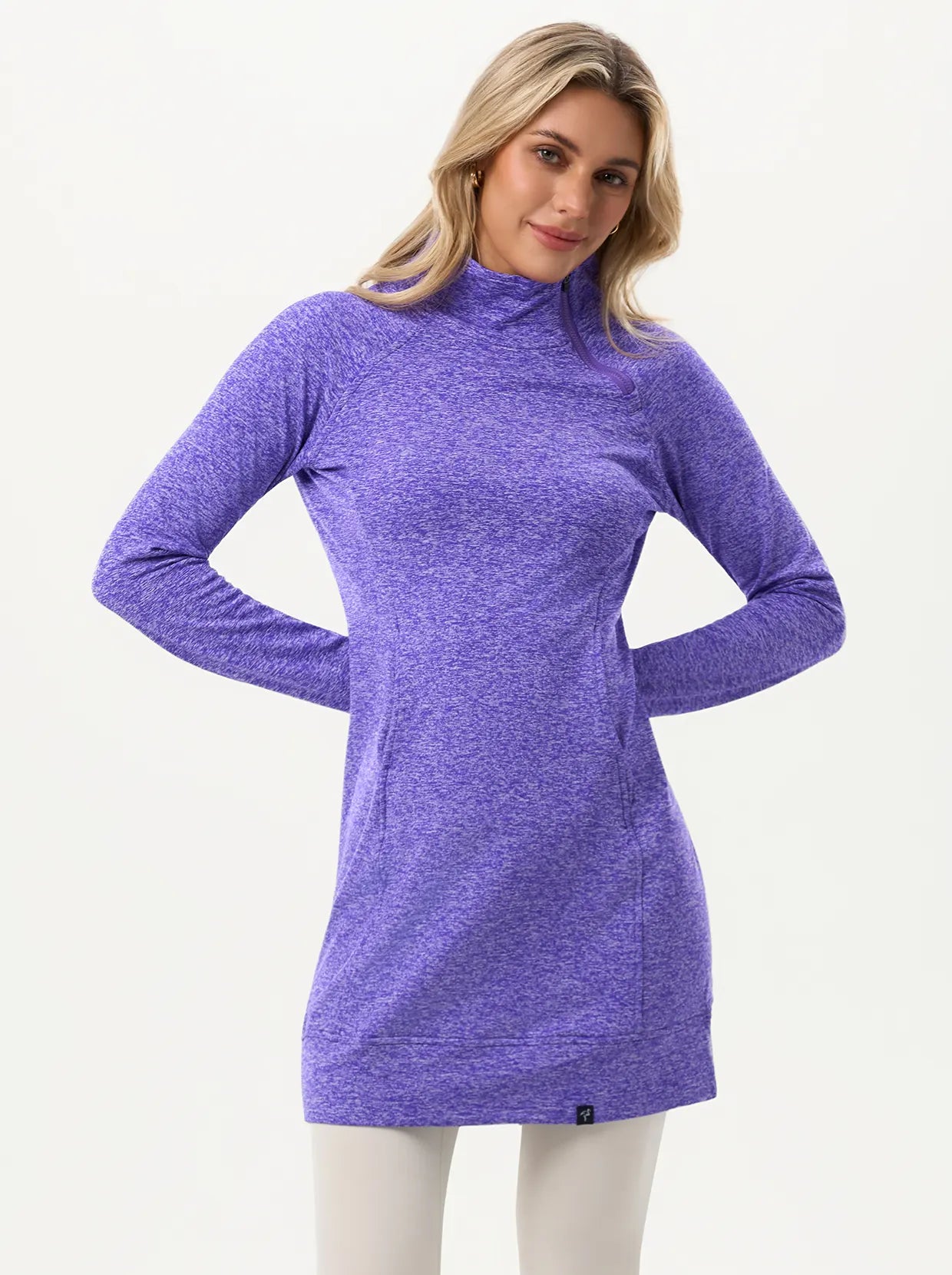 Stay comfy and ready for action in our long-sleeve thermal dress! Thumbholes keep your sleeves in place, while the side zipper makes layering a breeze. Moisture-wicking fabric keeps you dry, while also stretching and resisting pilling for lasting wear. With a handy pocket and playful style, it's your go-to for golf, tennis, pickleball, or just hanging out.