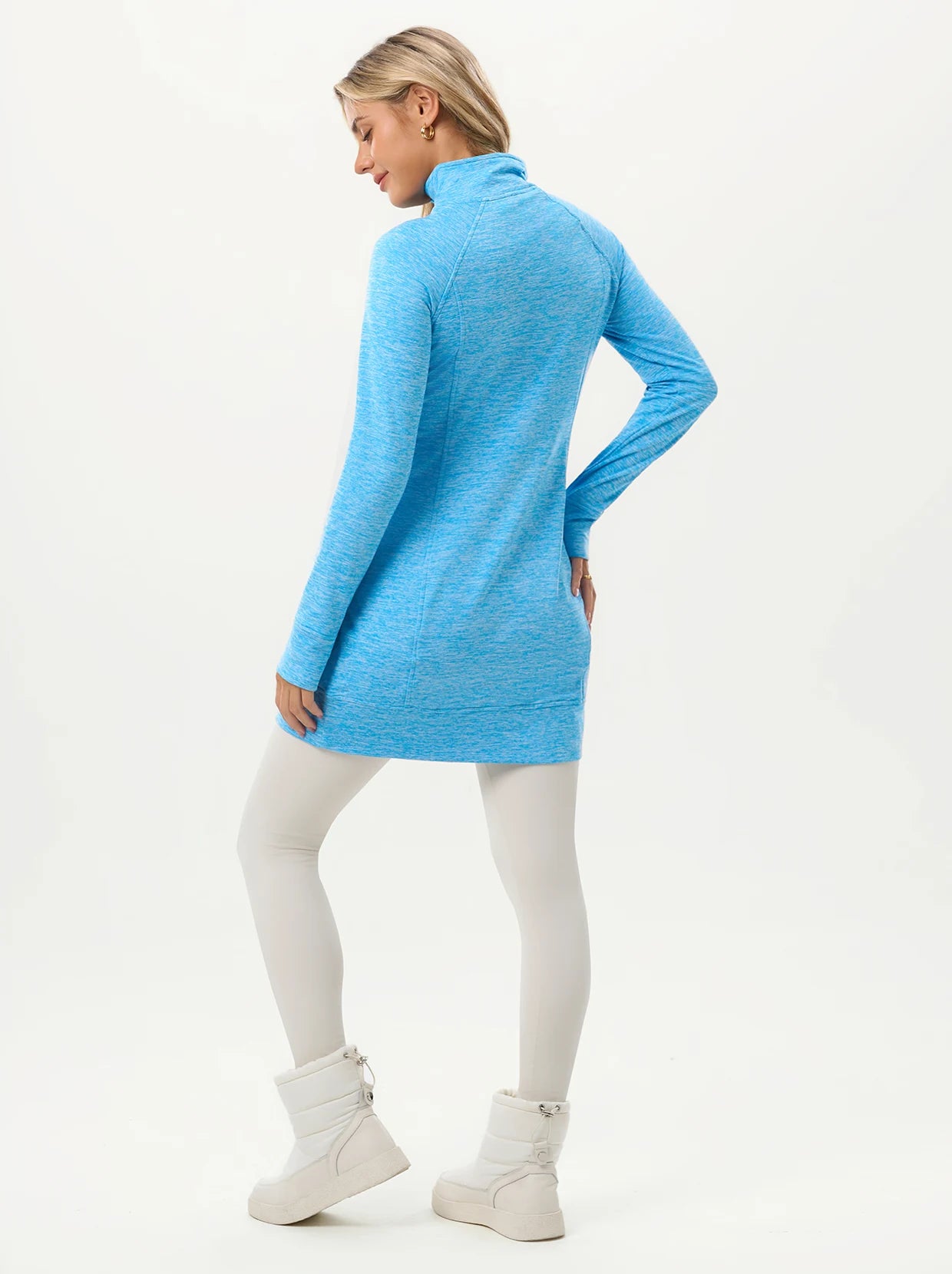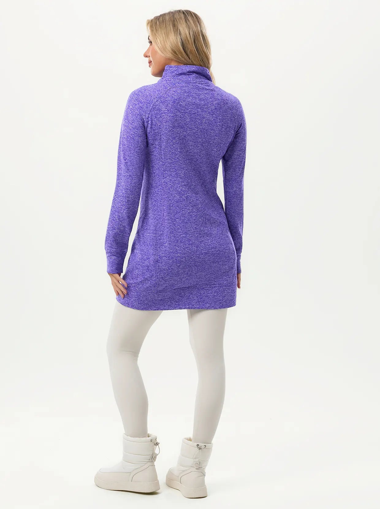 Thermal V-neck Long-sleeve Tunic Tops with Zipper Pockets