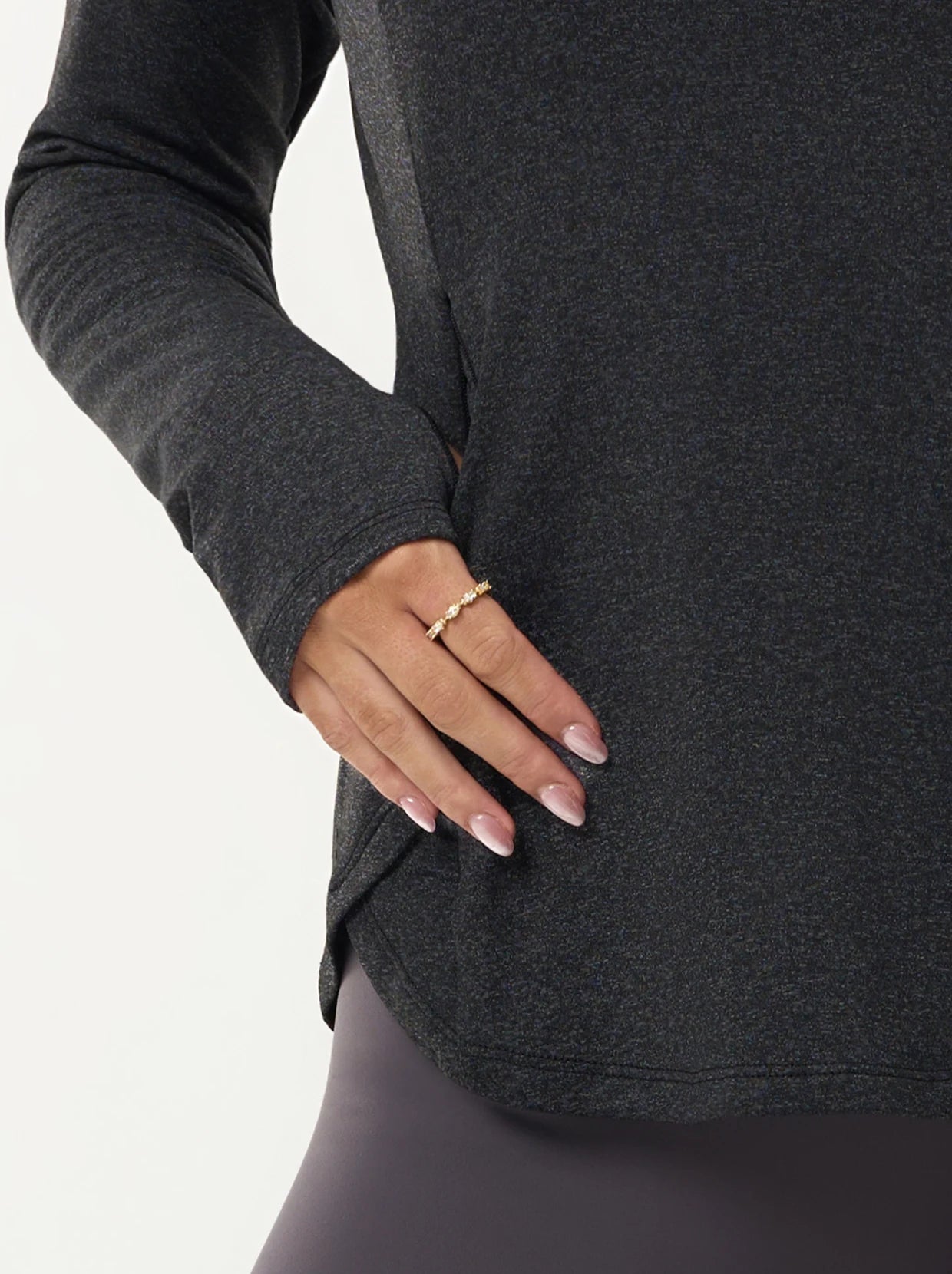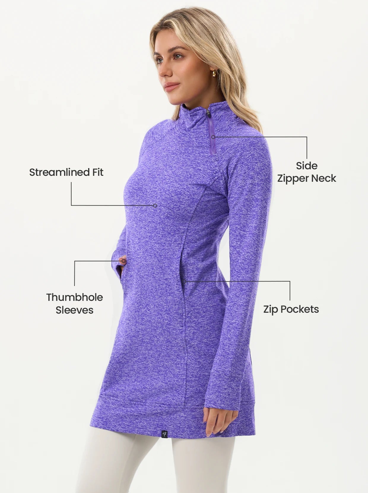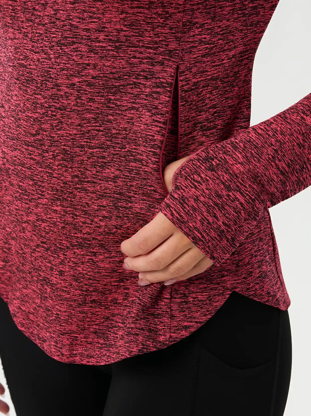 Side-zipper Long-sleeve Thermal Tops with Thumbholes
