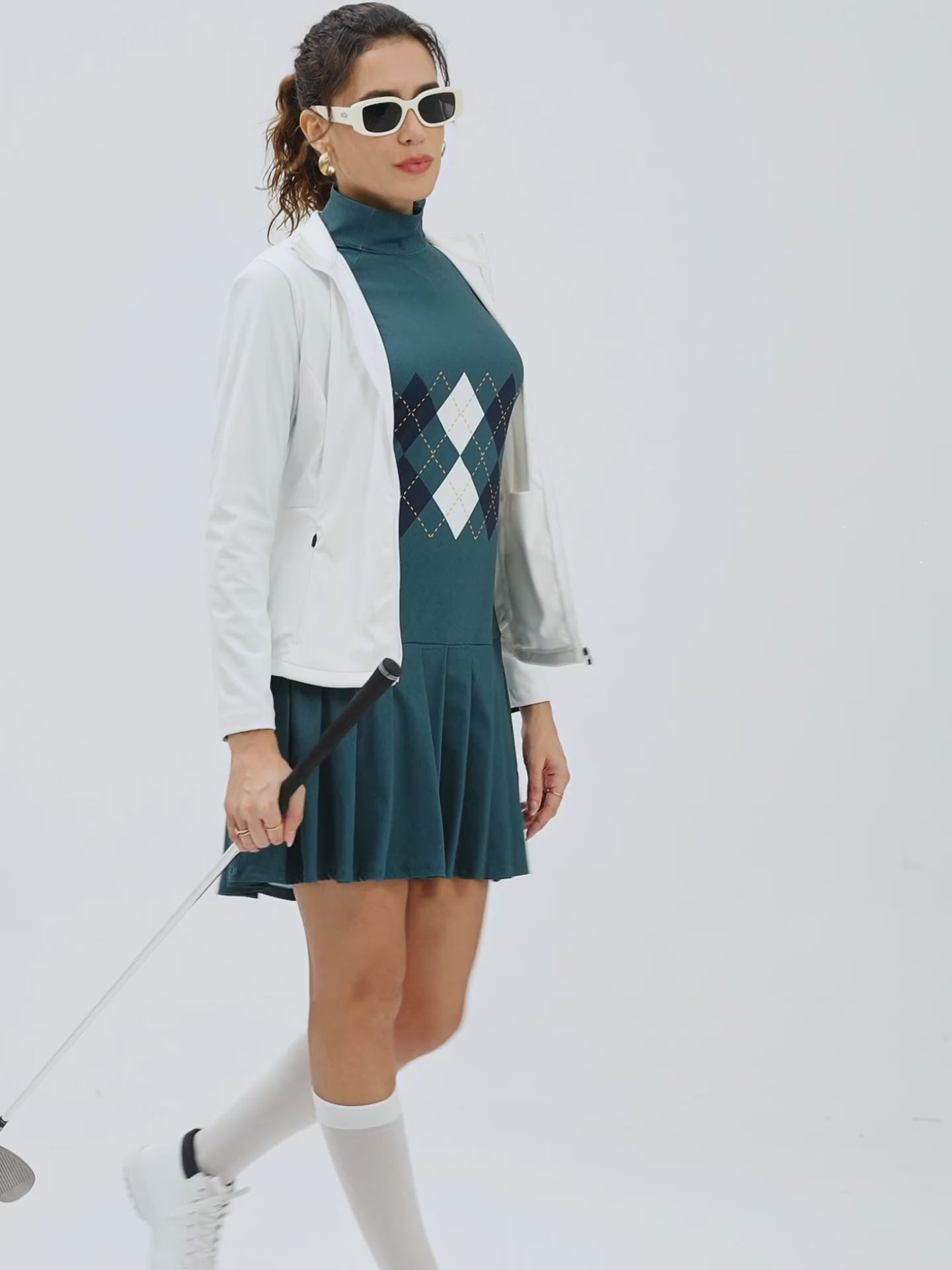 From our Fall for Classics Collection, our long-sleeve dress features a pleated hem that creates a beautifully flowy cut. Crafted from a lightweight, 4-way stretch fabric with built-in shorts, this dress offers complete ease of movement and confident coverage, making it perfect for Smart, Seasonal Dressing.