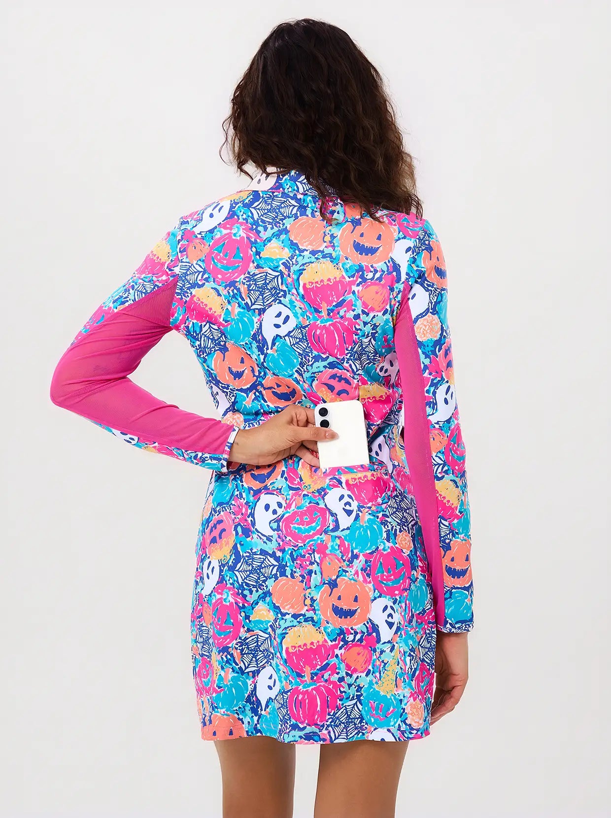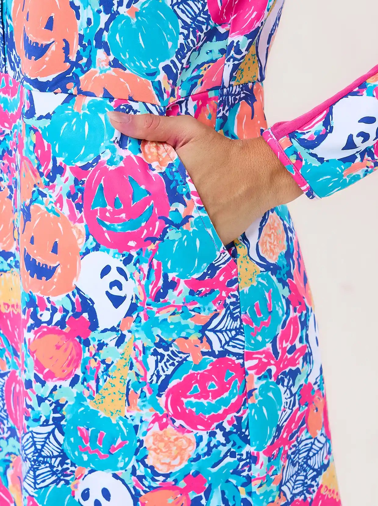 Halloween 34" Colorful Pumpkin Breathable Long-sleeve Polo Dress