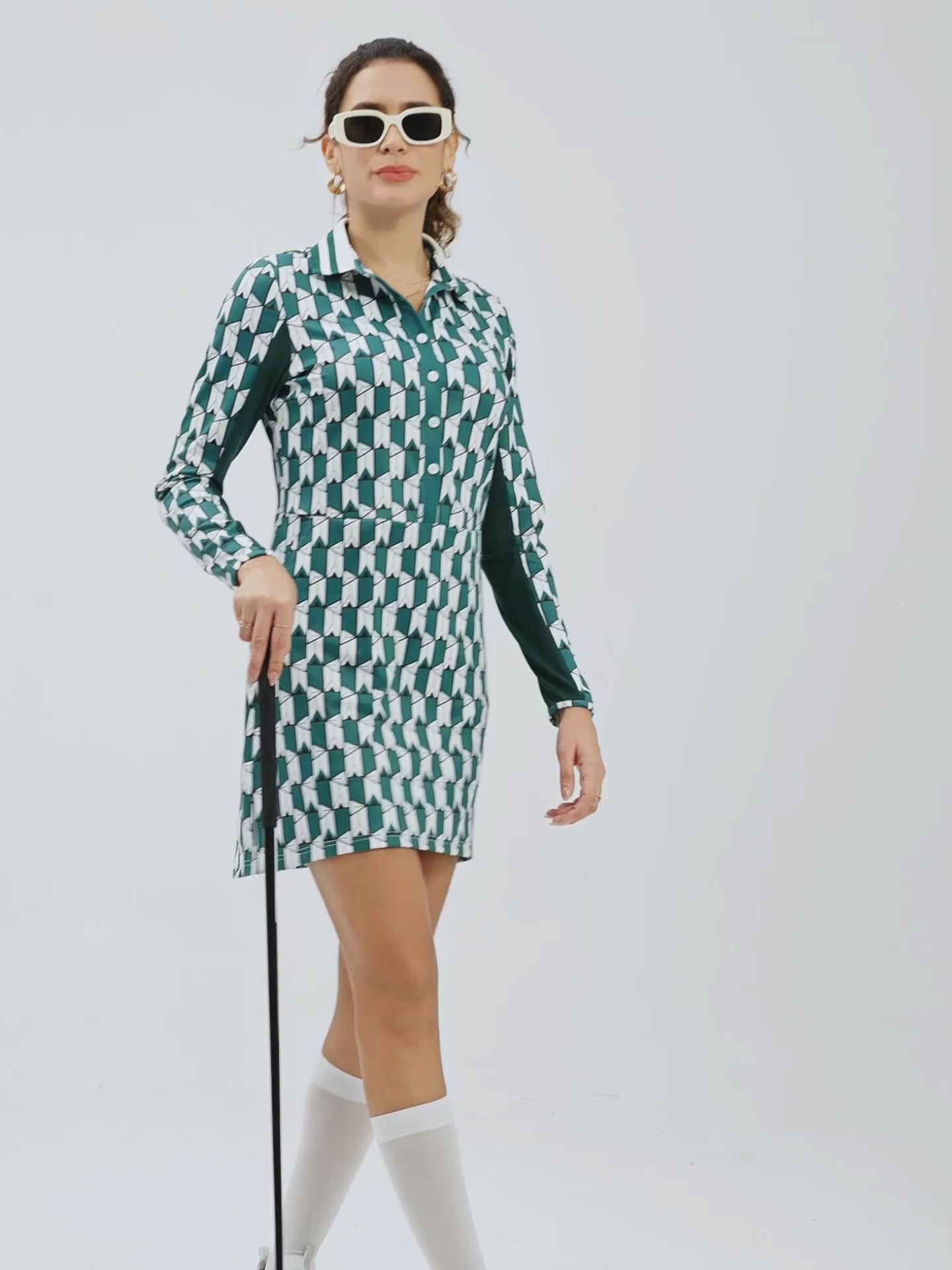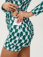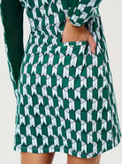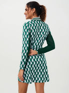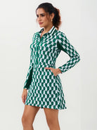 A contemporary take on a classic silhouette, this Fall for Classics polo dress makes a sophisticated statement with its structured green geometric print. Crafted with 4-way stretch fabric for a full range of motion, the dress features half-mesh sleeves that provide a perfect balance of airflow and sun protection.