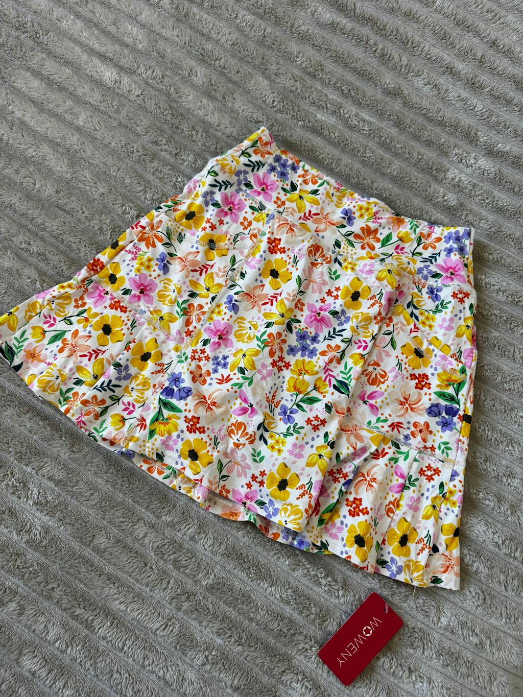 17" Yellow Floral Pleated Skorts with Shorts and Pockets