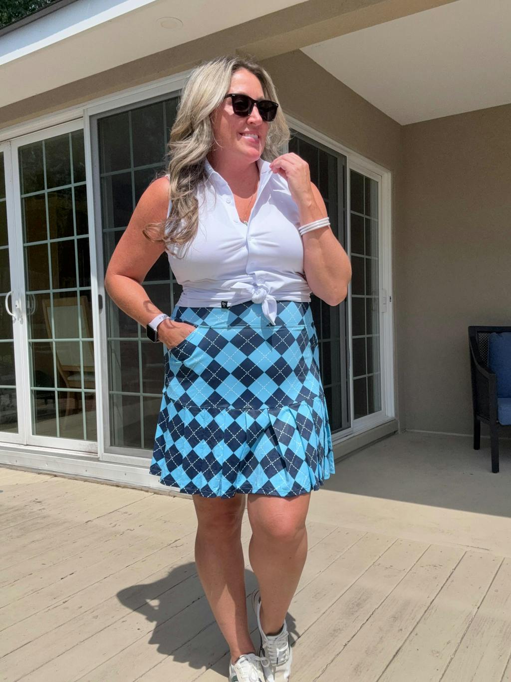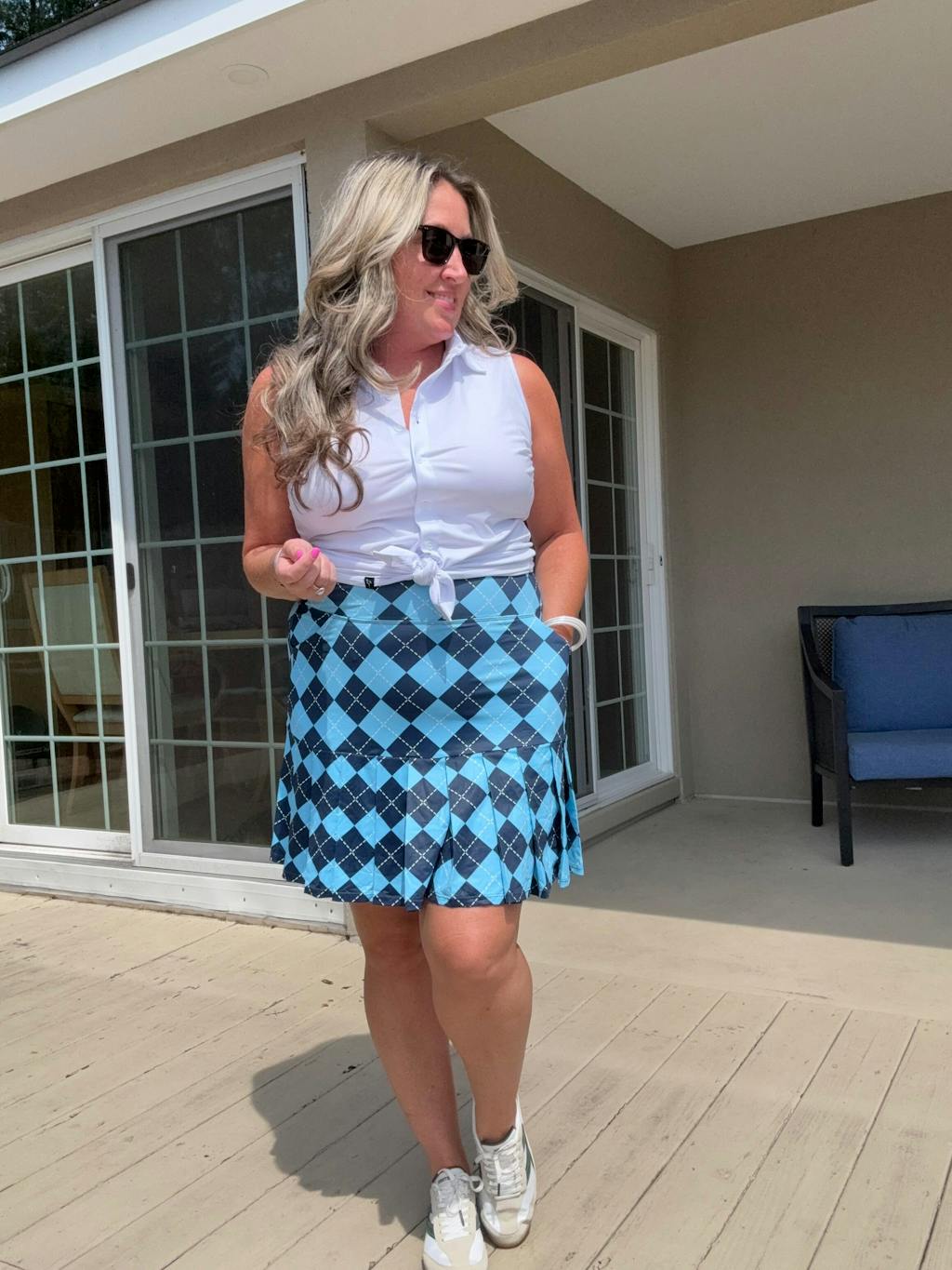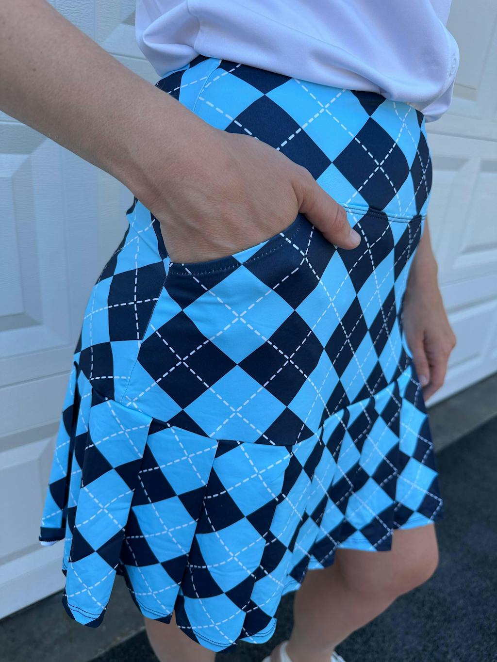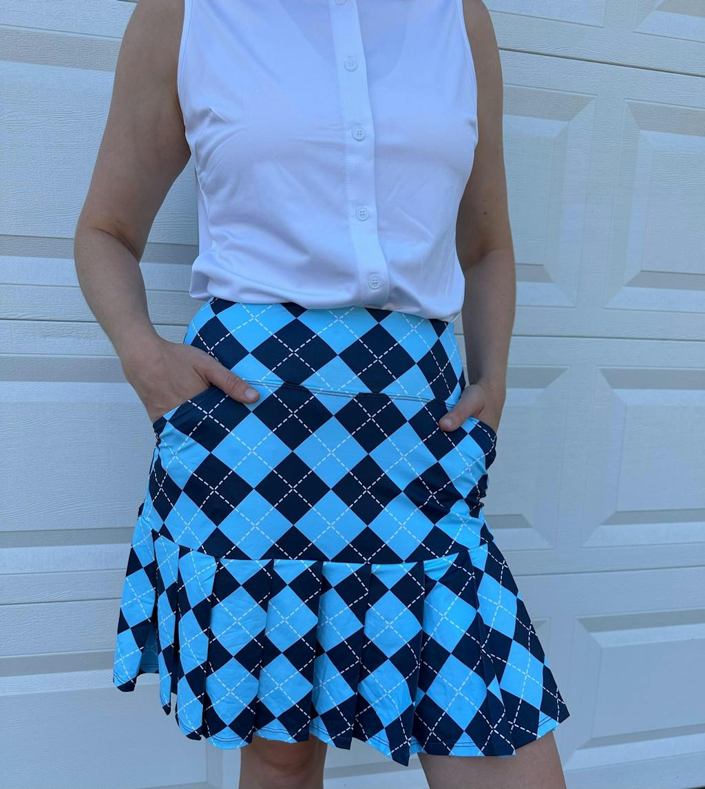 Blue Checkerboard 18" Pleated Active Skorts with Shorts and Pockets