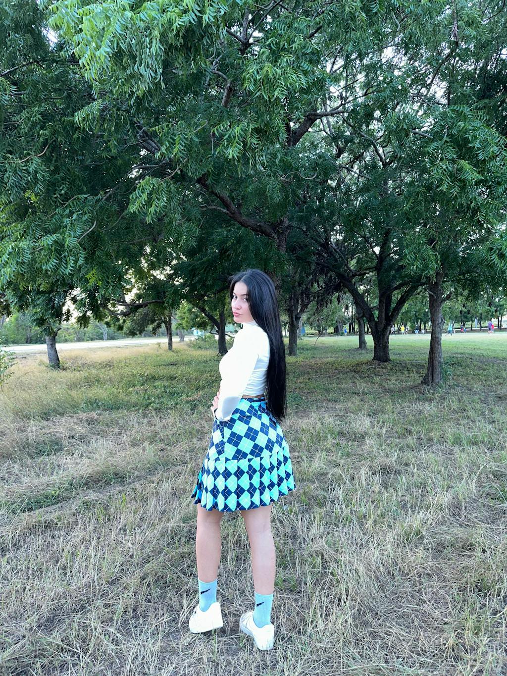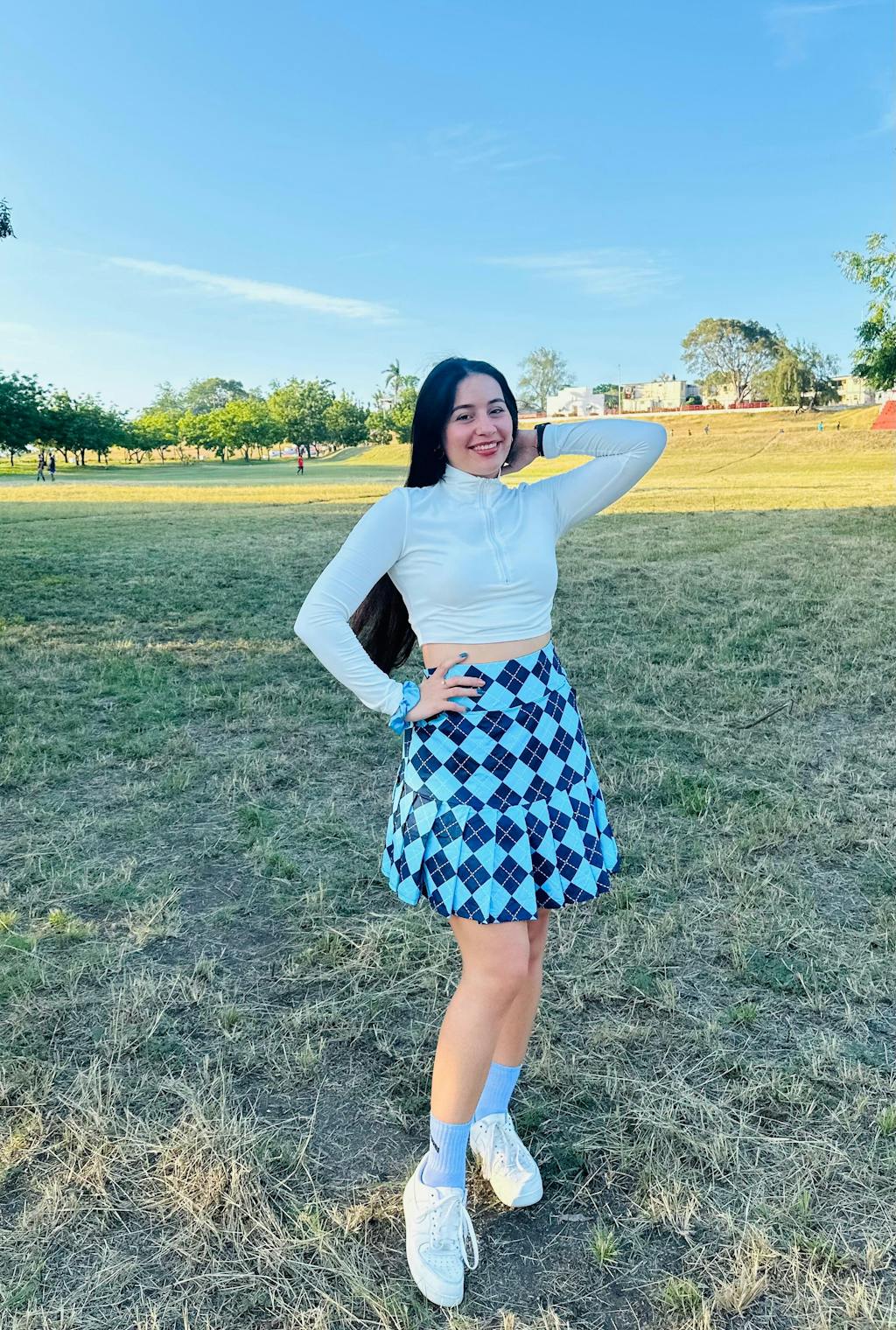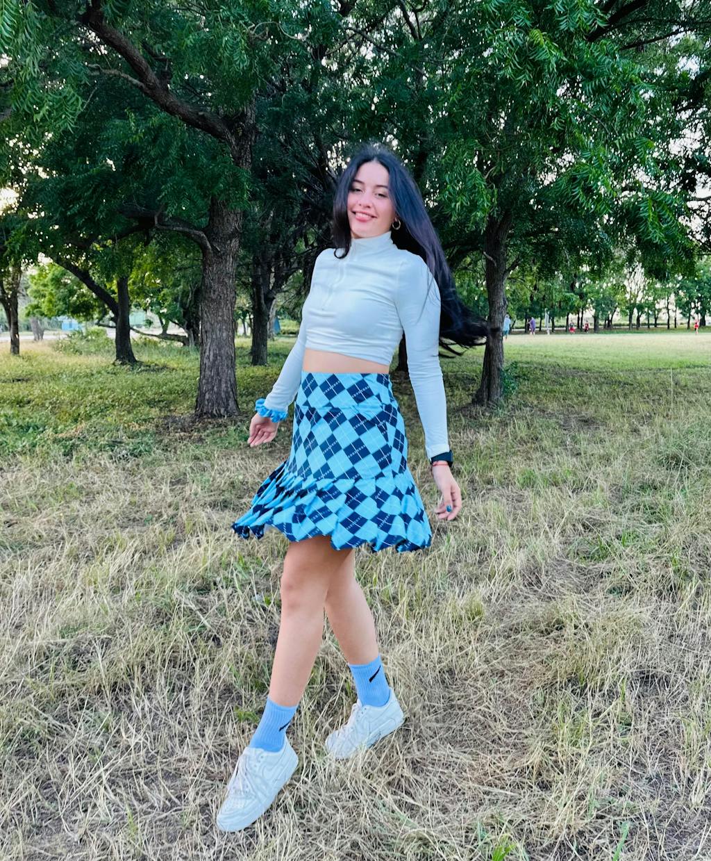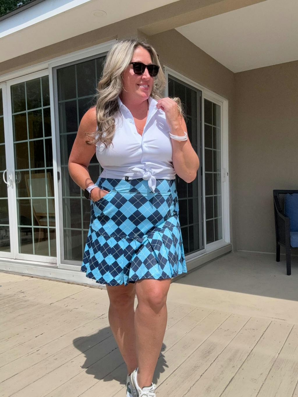 Blue Checkerboard 18" Pleated Active Skorts with Shorts and Pockets