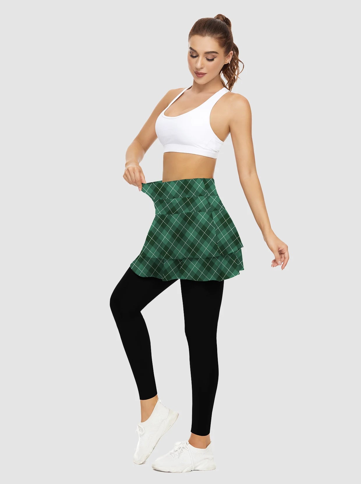 Soneven Pleated Athletic Skirted Leggings with Pockets