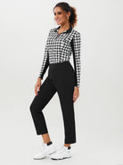 A true wardrobe essential from our Fall for Classics Collection, these versatile black ankle pants offer timeless elegance and modern function. Crafted from a premium quick-drying fabric with a cozy touch, the pants feature four pockets for ample storage, keeping you comfortable and hands-free for any occasion.