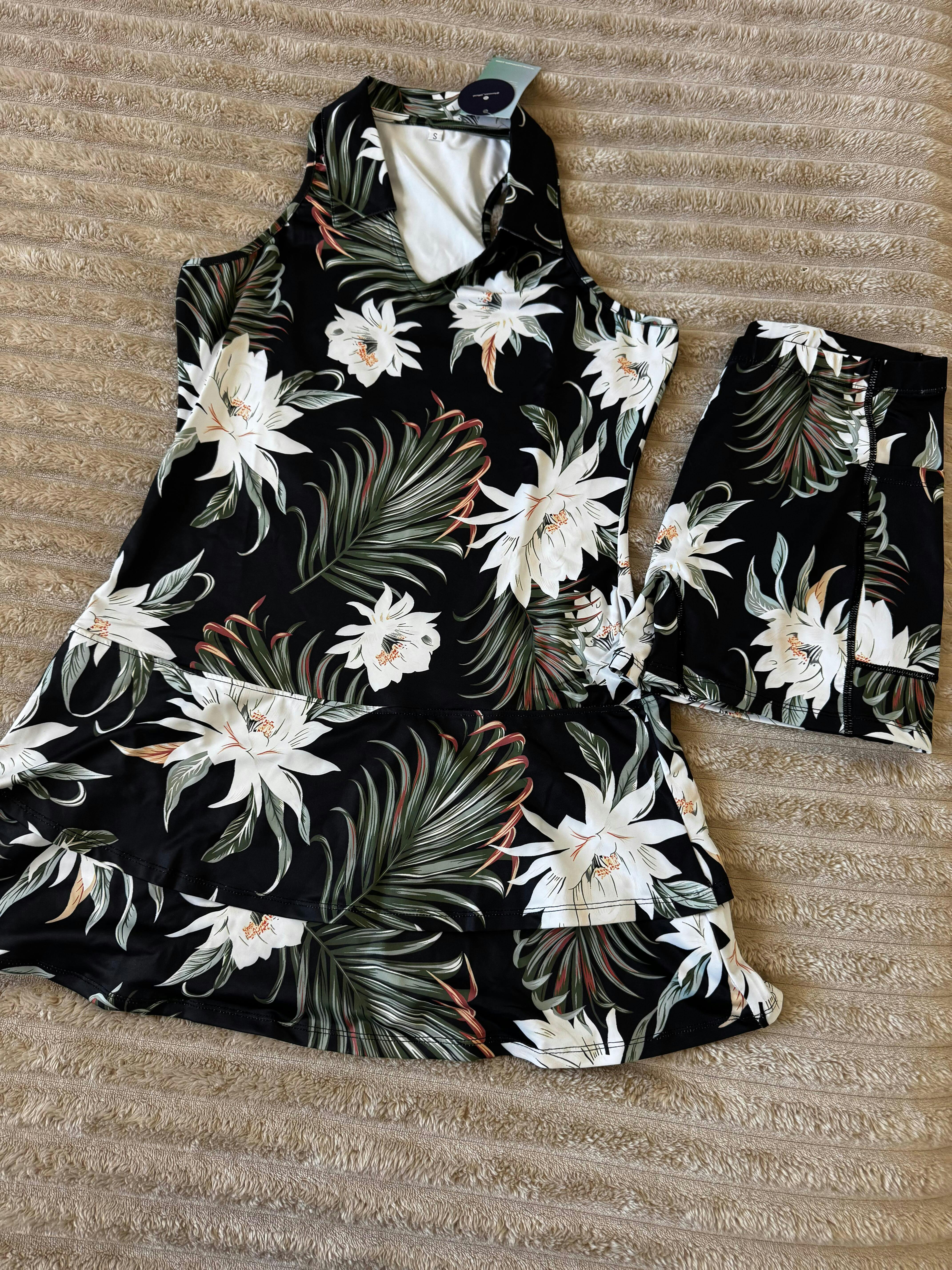 32" White Floral Racerback Sleeveless Dress with Shorts