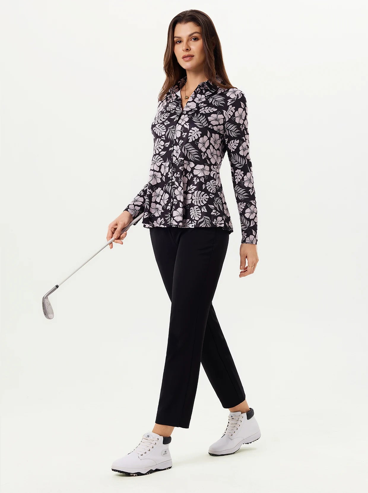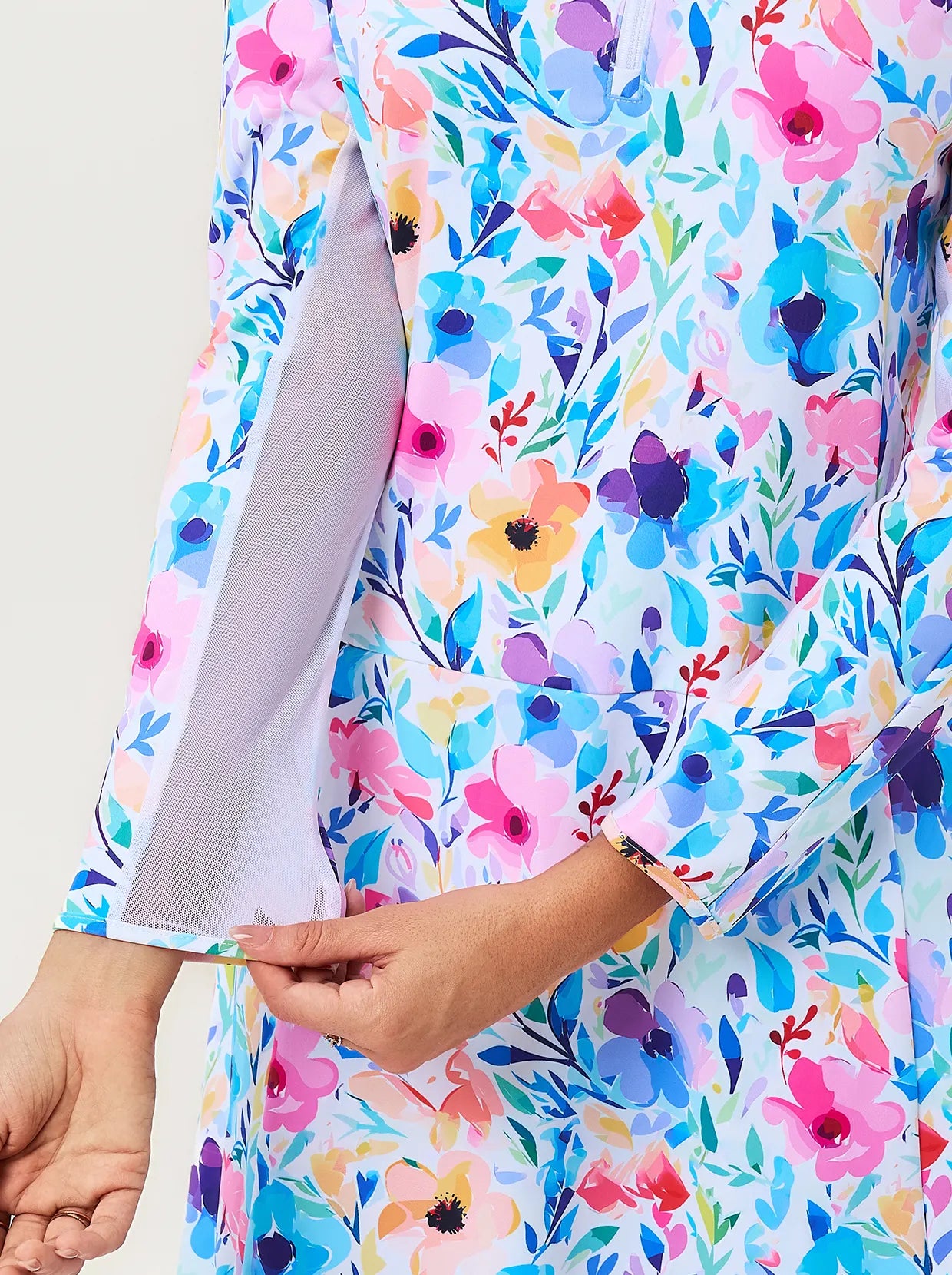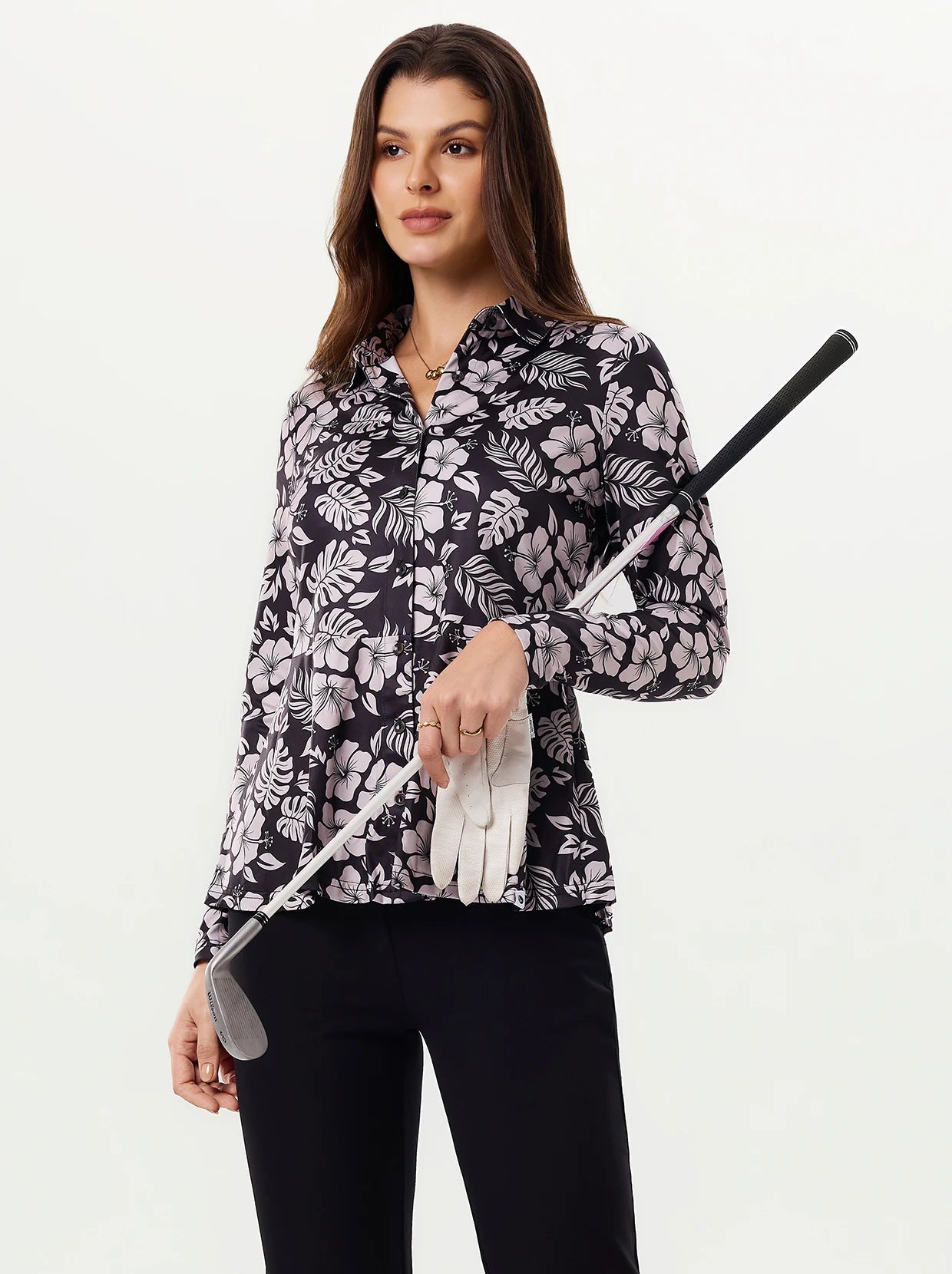 Elevate your golf wardrobe with our Floral Fantasy collection, designed to inject a burst of color and fun into your game! Featuring vibrant floral graphics, our golf shirt and skirt are crafted to ensure you look and feel fabulous on the course. Each shirt boasts a contoured fit that flatters your curves, enhancing both your style and performance.
