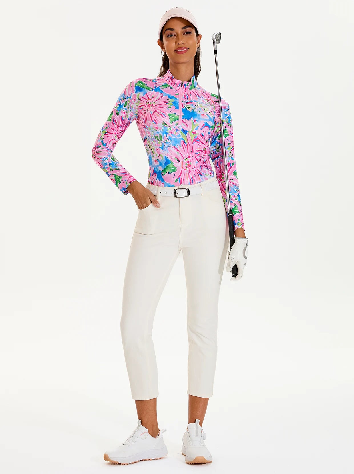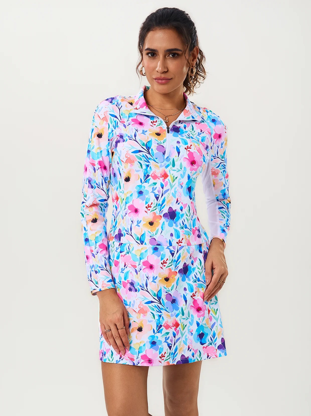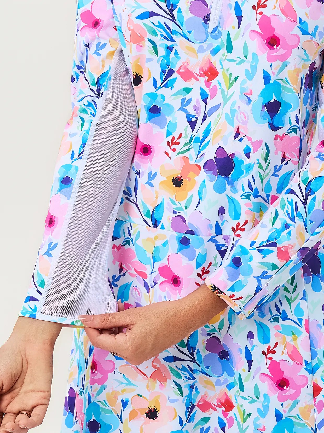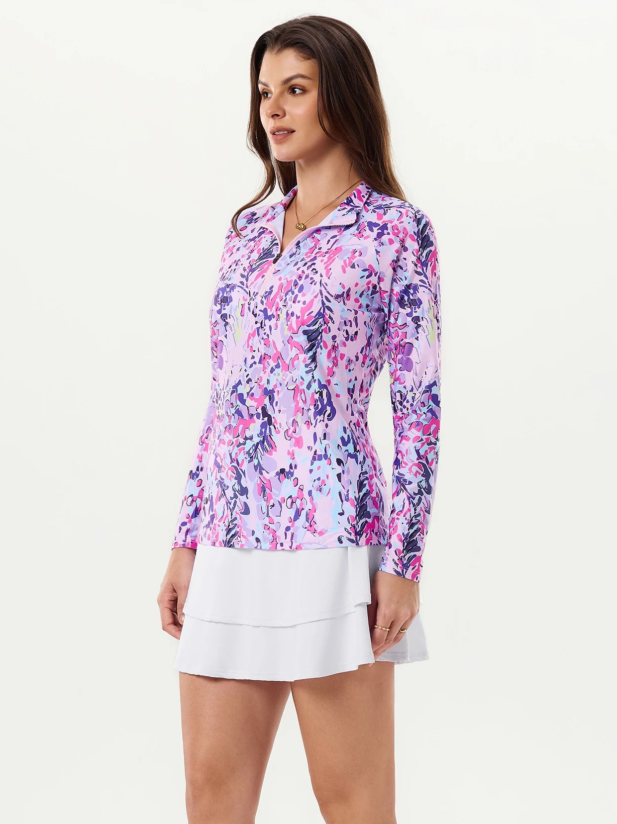 Elevate your golf wardrobe with our Floral Fantasy collection, designed to inject a burst of color and fun into your game! Featuring vibrant floral graphics, our golf shirt and skirt are crafted to ensure you look and feel fabulous on the course. Each shirt boasts a contoured fit that flatters your curves, enhancing both your style and performance.