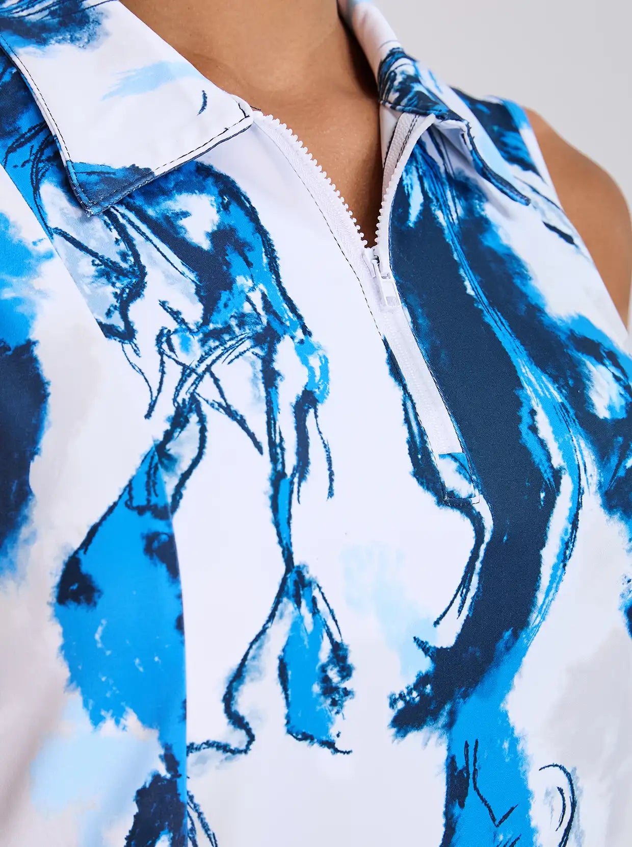 34" Blue Abstract Print Quarter-zip Sleeveless Dress For Women