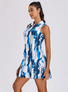 Unleash your inner athlete with our abstract pattern sleeveless dress. The 4-way stretch material allows for maximum range of motion, giving you the freedom to move. With inner shorts and back pleats, this dress is designed for comfort and versatility. Take on any challenge, whether it's pickleball or your daily routine, in this breathable and soft quarter-zip dress. Don't settle for boring and basic; elevate your performance and style with this abstract print dress.